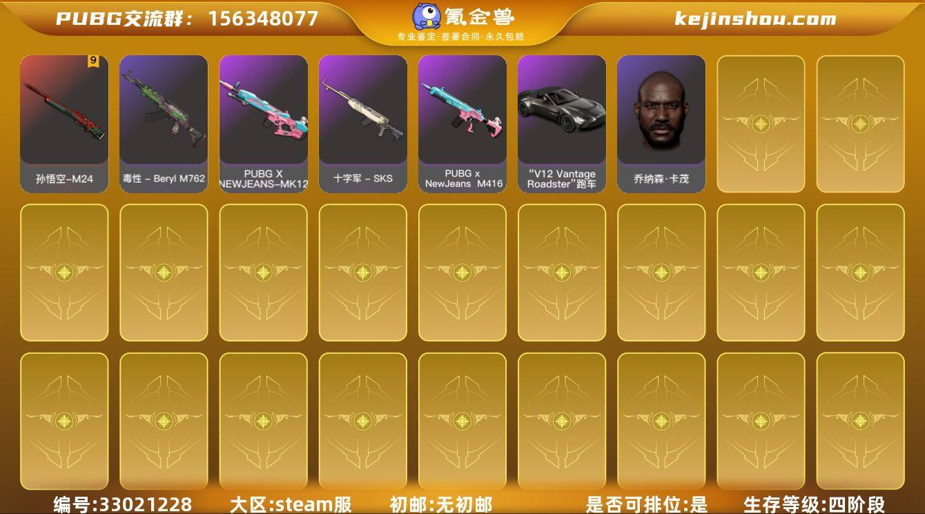 JDPX13683 生存500级可排位/9级孙悟空-M24/1级G-DRAGON-AUG/阿斯顿马丁跑车/滑雪镜/黑鬼/拉风龙-风华套装/孙悟空套装/沙悟净套装/金面具/品红色烟雾弹/脏辫/丸子头/红鞋/恶魔角/ 0BDH8S号 青铜, 生存等级1639, 名誉等级3, 金标数量6, 聚合物5800, 枪皮数量79, [成长型] G-DRAGON - AUG[1级], [成长型] 孙悟空 - M24[9级], “V12 Vantage Roadster” 跑车