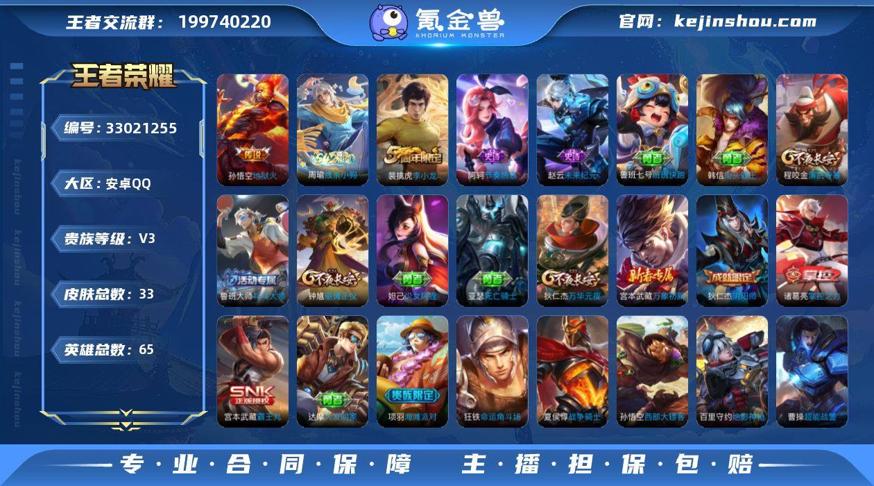安卓Q-V3-尊贵铂金I段位-65英雄-33皮肤-1传说-3史诗【传说皮肤】:孙悟空地狱火【限定皮肤】:狄仁杰阴阳师,狄仁杰万华元夜,项羽海滩派对,程咬金演武夺筹,钟馗驱傩正仪,裴擒虎李小龙【赛季限定】:狄仁杰万华元夜,程咬金演武夺筹,钟馗驱傩正仪【战令限定】:周瑜线条小狗【史诗皮肤】:周瑜线条小狗,裴擒虎李小龙,阿轲节奏热浪,赵云未来纪元【其他皮肤】:影百相守梦,鲁班七号班班快跑,鲁班大师乓乓大师,钟馗驱傩正仪,程咬金演武夺筹,狄仁杰万华元夜,诸葛亮掌控之力,狂铁命运角斗场,宫本武藏霸王丸,狄仁杰阴阳师,宫本武藏万象初新,亚瑟死亡骑士,妲己少女阿狸,达摩大发明家,韩信街头霸王,项羽海滩派对,云缨赤焰之缨,澜孤猎,女娲尼罗河女神,百里守约绝影神枪,铠龙域领主,夏侯惇战争骑士,刘邦圣殿之光,刘禅英喵野望,孙悟空西部大镖客,曹操超能战警,露娜绯红之刃,鲁班七号木偶奇遇记【营地ID】:1544124352