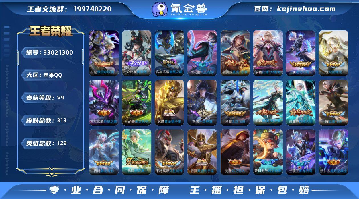 苹果Q-V9-至尊星耀IV段位-129英雄-313皮肤-1典藏皮肤-1无双-31传说-91史诗【英雄全皮】:司马懿全皮,孙权全皮,刘备全皮,敖隐全皮,蒙恬全皮,影全皮【荣耀典藏】:铠银白咏叹调【无双皮肤】:公孙离离恨烟【传说皮肤】:韩信踏浪归,关羽神骥镇沧海,马超神骥逐星野,花木兰异界灵契,司马懿九山相柳,桑启鸣野蒿,赵云乘龙铭钟鼎,澜逐花归海,鲁班七号时之奇旅,兰陵王影龙天霄,宫本武藏惊梅引,李信山海炽霜斩,百里守约碎云,马超无双飞将,裴擒虎寅虎赤拳,赵云淬星耀世,西施游龙清影,李元芳飞鸢探春,诸葛亮时雨天司,镜炽阳神光,虞姬启明星使,曜云鹰飞将,李信一念神魔,刘备时之恋人,张良黄金白羊座,干将莫邪久胜战神,达摩黄金狮子座,后羿黄金射手座,孙尚香末日机甲,宫本武藏地狱之眼,狄仁杰超时空战士【限定皮肤】:公孙离离恨烟,蔡文姬夏日便利店,虞姬夏日便利店,姜子牙天穹之誓,杨戬破阵退雄兵,李白谪仙醉月,狄仁杰阴阳师,赵云皇家上将,鲁班七号时之奇旅,钟无艳超时空战士,吕布御风骁将,元歌云间偶戏,元歌无心,甄姬落雪兰心,典韦岱宗,狄仁杰魔术师,达摩沙漠行僧,项羽海滩派对,韩信傲雪梅枪,兰陵王影龙天霄,孙悟空至尊宝,孙悟...