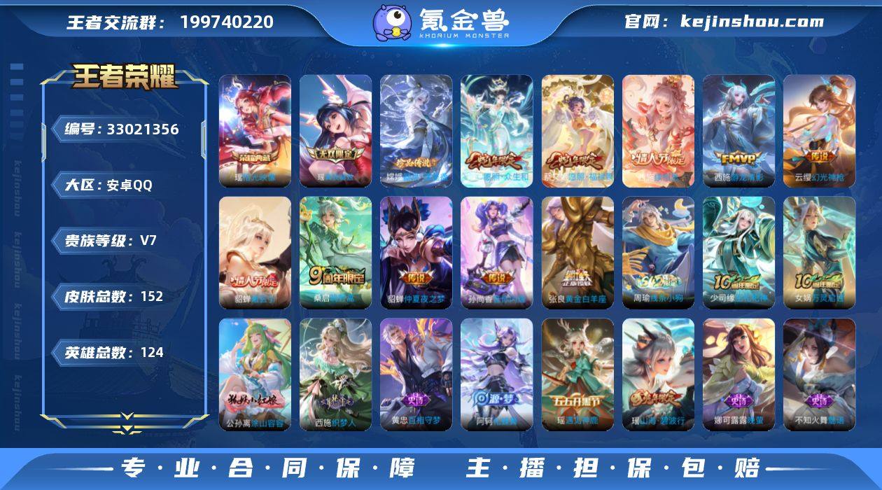 安卓Q-V7-永恒钻石IV段位-124英雄-152皮肤-1典藏皮肤-1无双-1珍品传说-10传说-42史诗【英雄全皮】:影全皮【荣耀典藏】:瑶拾光映像【无双皮肤】:瑶真我赫兹【珍品传说】:嫦娥器灵落星盏【传说皮肤】:西施续相思,妲己愿照众生和,蔡文姬愿照福禄聚,云缨幻光神枪,桑启鸣野蒿,貂蝉曦玄引,孙尚香音你闪耀,西施游龙清影,张良黄金白羊座,貂蝉仲夏夜之梦【限定皮肤】:蒙犽顽岩魄,蔡文姬夏日便利店,大乔绒语心约,虞姬夏日便利店,姜子牙天穹之誓,狄仁杰阴阳师,赵云皇家上将,孙尚香蔷薇恋人,元歌无心,狄仁杰魔术师,项羽海滩派对,貂蝉逐梦之音,兰陵王金庭之子,李元芳云中旅人,鬼谷子五谷丰年,沈梦溪大漠名商,裴擒虎擒涛扼浪,瑶山海碧波行,鲁班大师探海日志,桑启海盐诗旅,艾琳女武神,张良古海寻踪,鬼谷子天穹祈灯,貂蝉曦玄引,刘邦剑破天穹,周瑜熔金海岸【年限皮肤】:瑶山海碧波行,妲己愿照众生和,蔡文姬愿照福禄聚【赛季限定】:兰陵王金庭之子,沈梦溪大漠名商,李元芳云中旅人,桑启海盐诗旅,裴擒虎擒涛扼浪,鲁班大师探海日志,张良古海寻踪,鬼谷子天穹祈灯,刘邦剑破天穹,姜子牙天穹之誓,东皇太一噬灭天穹,太乙真人谧流熔炉,钟馗虚灵...