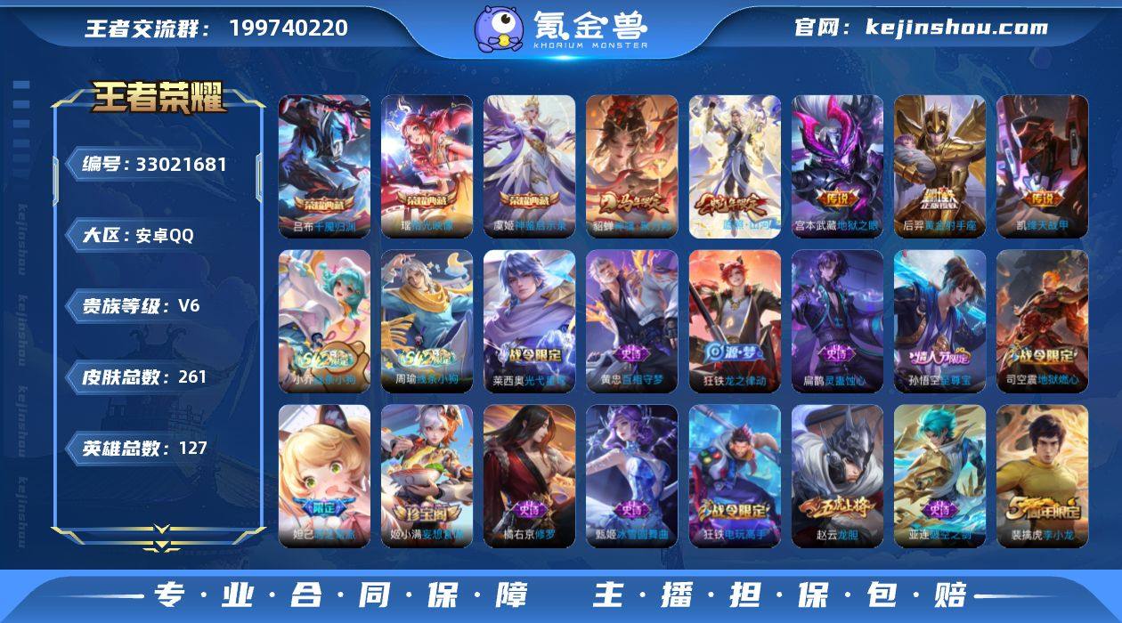 安卓Q-V6-至尊星耀IV段位-127英雄-261皮肤-3典藏皮肤-5传说-69史诗 【英雄全皮】:蒙恬全皮,司空震全皮,影全皮 【荣耀典藏】:虞姬神鉴启示录,瑶拾光映像,吕布千魇归渊 【传说皮肤】:貂蝉神骥聚万邦,司空震愿照山河定,铠绛天战甲,后羿黄金射手座,宫本武藏地狱之眼 【限定皮肤】:蔡文姬夏日便利店,虞姬夏日便利店,姜子牙天穹之誓,狄仁杰阴阳师,赵云皇家上将,赵云龙胆,妲己时之奇旅,高渐离玩趣恶龙,钟无艳超时空战士,扁鹊奇幻香踪,吕布猎兽之王,元歌无心,甄姬落雪兰心,狄仁杰魔术师,项羽海滩派对,王昭君午后时光,孙悟空至尊宝,李元芳银河之约,李元芳云中旅人,杨戬潮玩骑兵,女娲朔望之晖,雅典娜黎明之约,鬼谷子五谷丰年,梦奇顽趣,沈梦溪大漠名商,沈梦溪匿光破解者,裴擒虎李小龙,裴擒虎擒涛扼浪,狂铁电玩高手,云中君纤云弄巧,嫦娥拒霜思,嫦娥暖冬兔眠,西施玲珑珍味,鲁班大师探海日志,桑启海盐诗旅,暃星界游侠,戈娅驭风魔法,艾琳流音漫舞,司空震地狱燃心,阿古朵江河有灵,张良古海寻踪,蒙犽百解令,蒙恬荣光圣徽,高渐离燃音魔法,妲己灵卜魔法,鬼谷子天穹祈灯,姬小满妄想食味,沈梦溪龙舞盛年,鲁班七号蔬乡物语,李元芳蔬乡...