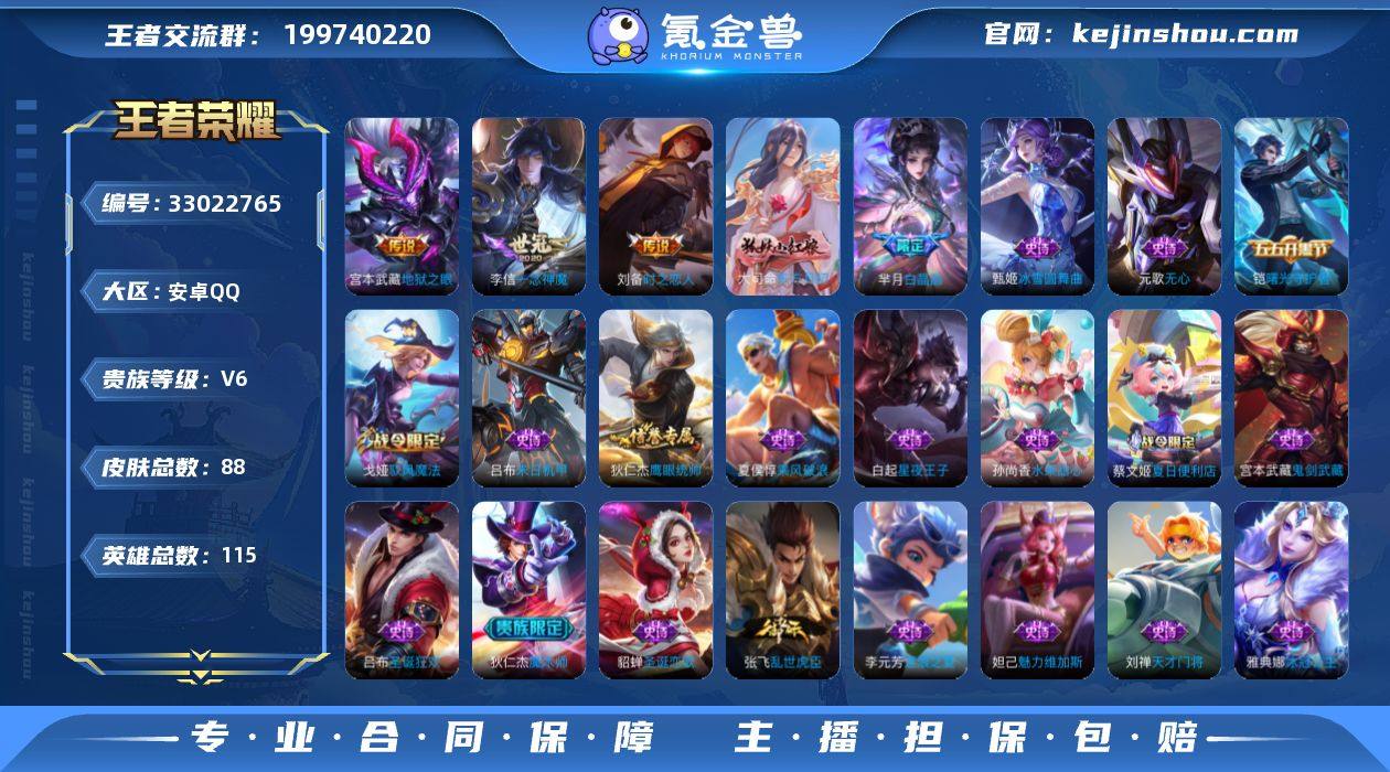 LK264201有二次安卓Q-V6-尊贵铂金II段位-115英雄-88皮肤-3传说-23史诗 【英雄全皮】:敖隐全皮 【传说皮肤】:李信一念神魔,刘备时之恋人,宫本武藏地狱之眼 【限定皮肤】:蔡文姬夏日便利店,大乔绒语心约,虞姬夏日便利店,姜子牙天穹之誓,狄仁杰阴阳师,赵云皇家上将,芈月白晶晶,元歌无心,狄仁杰魔术师,项羽海滩派对,兰陵王金庭之子,沈梦溪大漠名商,裴擒虎擒涛扼浪,西施玲珑珍味,鲁班大师探海日志,戈娅驭风魔法,张良古海寻踪,鬼谷子天穹祈灯,刘邦剑破天穹,刘备异域游侠,周瑜熔金海岸 【赛季限定】:兰陵王金庭之子,沈梦溪大漠名商,裴擒虎擒涛扼浪,鲁班大师探海日志,张良古海寻踪,鬼谷子天穹祈灯,刘邦剑破天穹,姜子牙天穹之誓,东皇太一噬灭天穹,钟馗虚灵犬护 【战令限定】:戈娅驭风魔法,西施玲珑珍味,蔡文姬夏日便利店,虞姬夏日便利店 【史诗皮肤】:大司命东方月初,蔡文姬夏日便利店,戈娅驭风魔法,元歌无心,芈月白晶晶,狄仁杰鹰眼统帅,白起星夜王子,李元芳逐浪之夏,刘禅天才门将,铠曙光守护者,雅典娜冰冠公主,夏侯惇乘风破浪,张飞乱世虎臣,吕布末日机甲,吕布圣诞狂欢,妲己魅力维加斯,嬴政摇滚巨星,孙尚香水果甜心,宫本武...