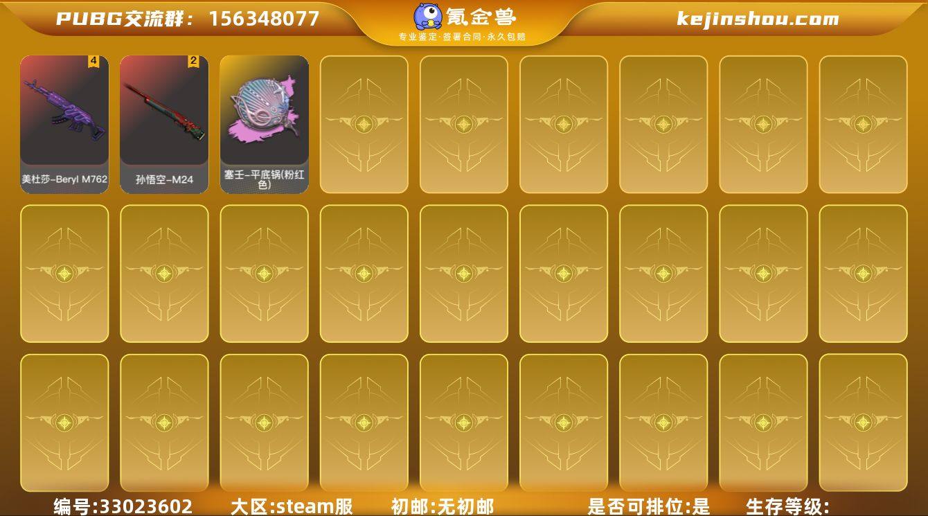 A12567/Steam/可排位/1段118级/4级美杜莎M762/2级孙悟空M24/塞壬平底锅/3图纸/发光手臂/PGC 2022 大礼包/详情看图 ,4级美杜莎-Beryl M762,2级孙悟空-M24,塞壬-平底锅(粉红色)