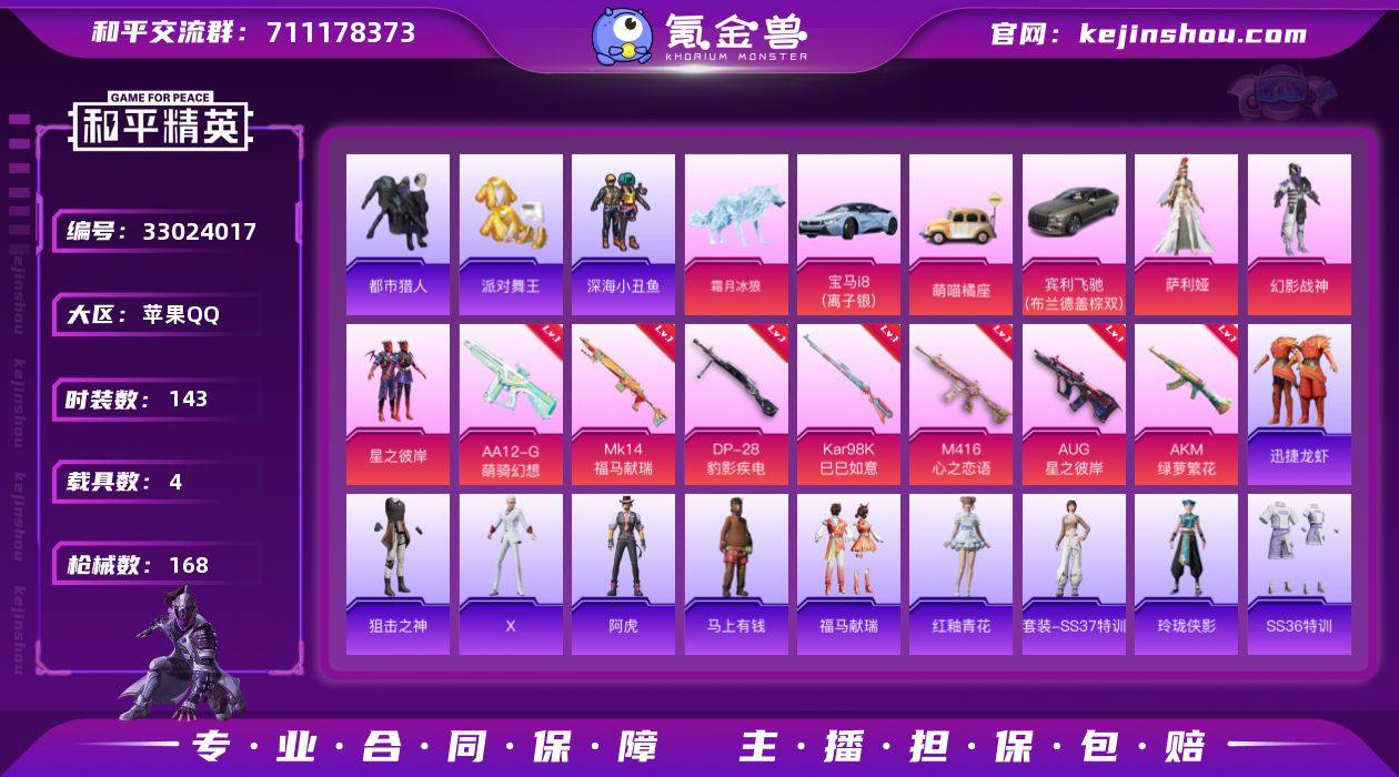 【都市猎人金鞋M4满级心之恋语AUG星之彼岸猫包4载具7特效枪3粉装 秒换绑不用等】 苹果Q区-54751热力值-143套装-168枪皮 【4载具】 萌喵橘座 宾利飞驰(布罗德盖棕双色) 霜月冰狼 宝马i8(离子银)【4稀有】 都市猎人 派对舞王(金靴子) 百万伏待背包(猫包) 冷酷挑战者【3粉装】 星之彼岸 幻影战神 角色-萨利娅【7特效枪】 M416-心之恋语(7级) Mk14-福马献瑞(5级) AA12-G-萌骑幻想(5级) AUG-星之彼岸(6级) AKM-绿萝繁花(5级) Kar98K-巳巳如意(5级) DP-28-豹影疾电(5级)【153热门】 深海小丑鱼 浪漫天命 都市猎人(蓝口罩) 迅捷狂鲨 白色伏地魔 SS27特训 SS26特训 SS25特训 SS24特训 SS23特训 SS22特训 M24-未来战士 AKM-缤纷海域 SCAR-L-玉兔迎春 AUG-幻影战神 M762-天降萌叽 M762-彩虹符号 Mk47-乌木金纹 SKS-糯团青竹 DBS-彩虹符号 M249-彩虹符号 MG3-幻世战舞者 AKM-星之彼岸 呆萌铁蟹 鹰眼刺客 M416-蓝色火焰 GROZA-彩虹符号 长空猛禽 特训学院 沙漠雄狮 燃烧卡路里 青年教官 牛气冲天 懵萌河马 魅力单车 六六大吉 猎鹰 蓝色运动 橘黑制服 竞技达人朋克 坚韧舞者 活力之心 黄色运动 漫步者 黄色伏地魔 红色运动 黑色伏地魔 海岛探路者 AA12-G-雨过天青 沙漠之鹰-雨过天青 P9...