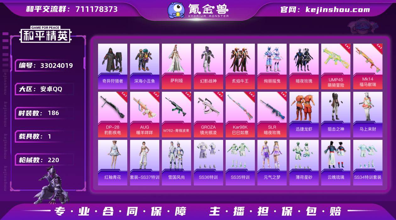 可二次实名【粉螳螂奇异狩猎者深海小丑鱼8特效枪5粉装1载具 秒换绑不用等】 安卓Q区-69098热力值-186套装-220枪皮 【1载具】 路特斯ELETRE(冰川蓝)【3稀有】 奇异狩猎者 Mark.06蓝螳螂 8号机粉螳螂【5粉装】 暗夜玫瑰 绚丽摇曳 炙焰牛王 幻影战神 角色-萨利娅【8特效枪】 Mk14-福马献瑞(5级) UMP45-萌骑冒险(3级) SLR-暗夜玫瑰(7级) M762-青锋波束(5级) Kar98K-巳巳如意(5级) AUG-暖羊咩咩(5级) GROZA-镜光银凌(5级) DP-28-豹影疾电(5级)【215热门】 深海小丑鱼 赛罗奥特曼 雪山精英(老6服) 迅捷狂鲨 极速红龙 醒狮腾龙 团圆交子 瑞龙福将 白色伏地魔 SS27特训 SS26特训 SS25特训 SS24特训 SS23特训 SS22特训 AKM-缤纷海域 GROZA-乌木金纹 SCAR-L-玉兔迎春 M762-天降萌叽 Mk47-乌木金纹 UMP45-蓝色火焰 DBS-彩虹符号 M249-彩虹符号 MG3-幻世战舞者 AKM-虎虎生威 M416-紫翼圣骑 M416-神秘黑猫 M416-蓝色火焰 GROZA-异彩先驱 GROZA-彩虹符号 破蛋小黄鸡 长空猛禽 异彩先驱 虚音幻奏 甜心亚梦 甜蜜熊情侣 特训学院 青年教官 骑行爱好者 牛气冲天 霓虹极客 魅力单车 猎鹰 黎明保卫者 蓝色运动 拉斐尔 橘黑制服 竞技勇士朋克 竞技达人朋克 坚韧舞者 灰色格斗者 黄色运动 漫步者 黄...