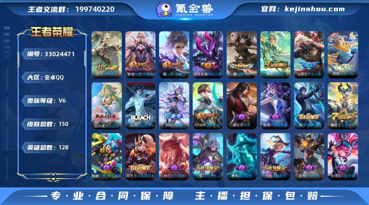 贵族6/皮肤150/传说7/史诗46/英雄128/金标韩信/金标鲁班大师/鲁班大师全皮/神树通天/鸣野蒿/齐天大圣/山海·苍雷引/山海·炽霜斩/云鹰飞将/地狱之眼/阴阳师/皇家上将/优雅恋人/蔷薇恋人/云端筑梦师/猎兽之王/游园惊梦/山海·玄木吟/魔术师/万华元夜(s22)/海滩派对/云中旅人(s29)/华丽摇滚/五谷丰年/原初追遂者/顽趣-梦奇/大漠名商(s28)/擒涛扼浪(s31)/纤云弄巧/梁祝/暖冬·兔眠/玲珑珍味/匿光启智者/探海日志(s32)/海盐诗旅(s30)/星界游侠/驭风魔法/江河有灵/古海寻踪(s33)/蒙恬荣光圣徽/高渐离燃音魔法/妲己灵卜魔法/鬼谷子天穹祈灯(S34)/龙武盛年/剑破天穹(s35)/程咬金群星魔术团/噬灭天穹(s37)/荣光之誓/线条小狗-周瑜/涂山容容/石田雨龙/化蝶舞/电玩·爆裂旋风/修罗/鹰眼统帅/箭羽风息/猫狗日记-孙策/逐浪之夏/曙光守护者/特工魅影/心灵骇客/暗隐猎兽者/乘风破浪/德古拉伯爵/水晶猎龙者/白龙吟/末日机甲-吕布/幽灵船长/金属风暴/女仆咖啡/魅力维加斯/水果甜心/地狱岩魂/偶像歌手/冰雪圆舞曲/圣诞恋歌/未来纪元-赵云/兰陵王雾影缉谜/线条小狗-桑启/鹤鸣心笺/克喵/命运加冕/灵卦秘语/星梦巡礼/雪境奇遇-西施/怪诞之夜/春野之旅/功夫炙烤/完美运算/王牌新星/聚星闪耀/妄想特派/零...