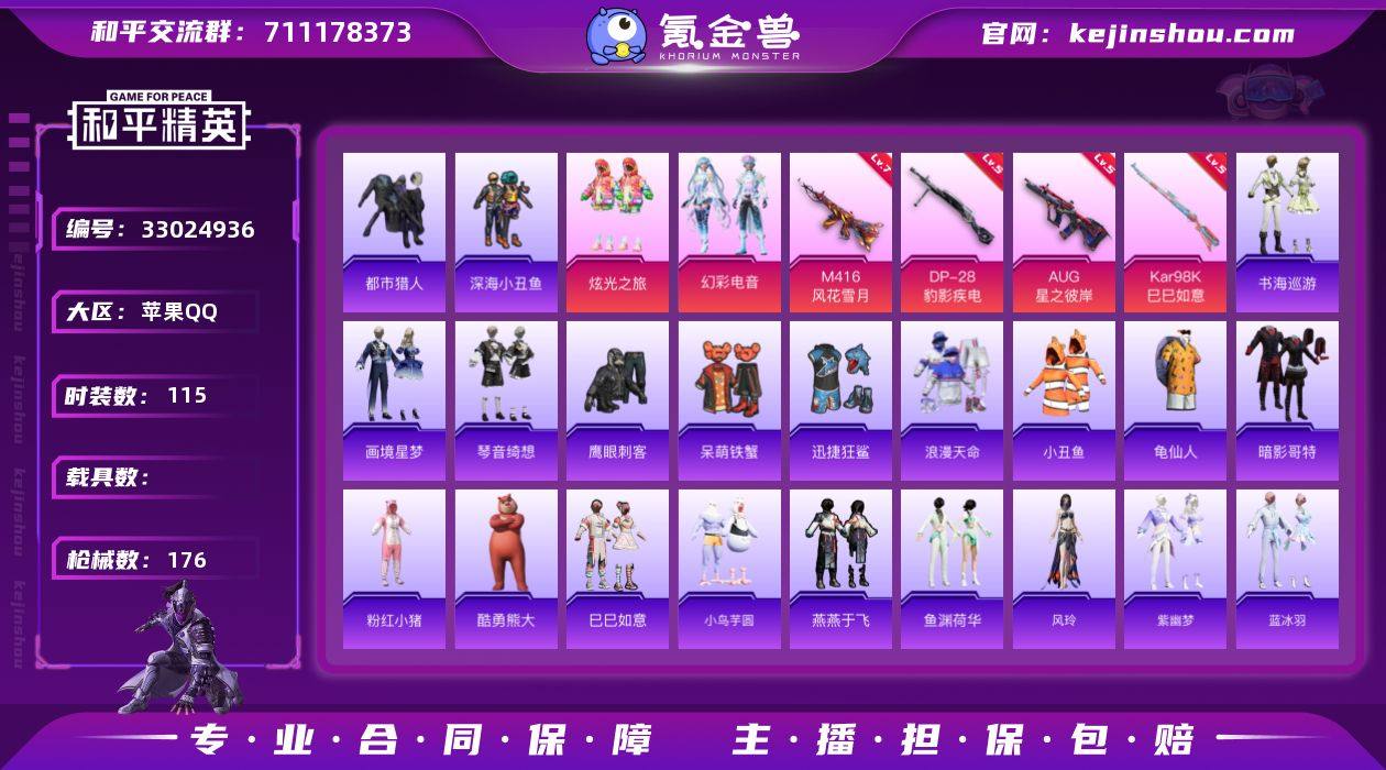 苹果 【小号 套装-都市猎人/套装-暗影哥特/M416-风花雪月(七级)/AUG-星之彼岸(五级)/粉装-炫光之旅】手Q-3粉装-6特效枪-0载具-3粉色飞行器-50884热力值-4王牌印记-115套装-176枪皮 【热门品类】:套装-浪漫天命,套装-都市猎人,套装-深海小丑鱼,套装-小丑鱼,套装-龟仙人,套装-暗影哥特,套装-粉红小猪 【粉色套装】:粉装-炫光之旅,粉装-幻彩电音,角色-虎痴许褚 【粉色枪皮等级】:M416-风花雪月(七级),AUG-星之彼岸(五级),UMP45-萌骑冒险(四级),Kar98K-巳巳如意(五级),Mk14-福马献瑞(五级),DP-28-豹影疾电(五级) 【粉色枪皮】:M416-风花雪月,AUG-星之彼岸,UMP45-萌骑冒险,Kar98K-巳巳如意,Mk14-福马献瑞,DP-28-豹影疾电 【粉色飞行器】:萌物绒绒飞行器,彩虹独角兽飞行器,极意拳锋飞行器 【粉色降落伞】:幻影战神降落伞,恐龙拽拽降落伞,橘柚倾心降落伞,环太平洋降落伞,彩虹甜喵降落伞,炎氏战神降落伞,炫光之旅降落伞,圣堂之誓降落伞,智耀战神降落伞,幻彩电音降落伞,荧海星豚降落伞,炫彩糖果降落伞,虎痴许褚降落伞 【稀有套装】:套装-龟仙人,玩偶服-酷勇熊大,套装-巳巳如意,套装-小鸟芋圆,套装-雪国风尚,角色-奈斯,套装-马上有钱,套...