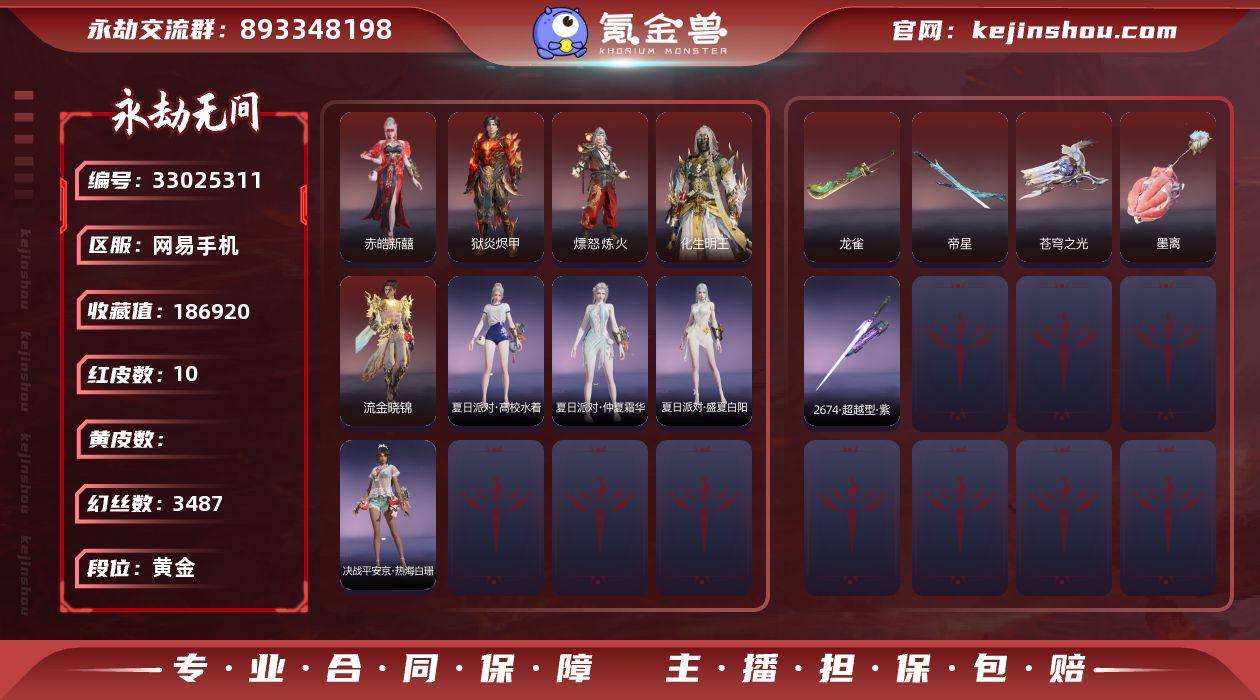 WJ5817,网易手机,网易支付无法注销,可换绑,三人段位黄金3,声望2,10红,310金,等级273,收藏值186920,幻丝3487,金砖17,通行证Lv1,变身器,守望先锋DVa战斗机甲,红色神品,墨离,流金晓锦,化生明王,赤皓新囍,狱炎烬甲,熛怒炼火,苍穹之光,龙雀,帝星,2674超越型紫,角色金色皮肤,P5R雨宫莲JOKER,司天命,禄运玉霄,夏日派对仲夏霜华,赤丹朱湛,祸津素盏,倾国倾城闭月,长歌诗韵胡旋女,观山海青鸟,福瑞天泽,观山海秋神蓐收,炽火照夜,春日序曲夜汐,夏日派对盛夏白阳,代号丝莼,观山海冬神玄冥,秋藏桂,绮云衫,倾国倾城羞花,赤阳天狐,三丽鸥家族酷洛米,黄昏巫主,楚韵九歌云中君,虹猫蓝兔七侠传虹猫,金财聚辉,赤焰战灵,开辟鸿蒙日月明,雪铃绮歌,虹猫蓝兔七侠传蓝兔,长歌诗韵如梦令,承武禅法,冬日绮韵白熊,开辟鸿蒙风雨谐,智绘萍之缘,兰庭月,怪诞狂想红蓝狂想,斗罗大陆唐三,追猎,昆仑之主,开辟鸿蒙山川润,长歌诗韵鹧鸪天,碧水青天,九阴圣女,洛天依星空投影,夏日派对高校水着,御宅罗梦,清雅少女,决战平安京热海白珊,阴阳师赤影妖刀姬,妖刀姬,观山海精卫,复制体尼尔,西行劫杨戬,龙之影过江龙,发型金色皮肤,韶光发,P5RNOIR发型发,(挑染)白芷发,伏苓发,九州遗珍春桃发,斗罗大陆海神发,逆水寒江海发,(...