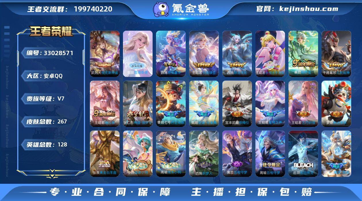【精品女号·全皮王昭君·1.1W甄姬·金标王昭君·中路46段·倪克斯神谕·雪境奇遇·游龙堇华·至美化雀舞·无二次包过】YXw22427-安卓Q-128英雄-267皮肤-11王者印记-240铭文-贵族积分4w【贵族7】【2典藏·1无双·1星传说·14传说·26按键】【因赛季更新游戏段付以上号为准!】 【英雄全皮】:王昭君全皮,戈娅全皮,空空儿全皮 【荣耀典藏】:武则天英雄,武则天倪克斯神谕 【无双皮肤】:甄姬雪境奇遇 【星元皮肤】:西施游龙堇华 【传说皮肤】:王昭君长夜焕生,王昭君映山客,桑启鸣野蒿,王昭君永恒水手月亮,甄姬至美化雀舞,鲁班七号时之奇旅,宫本武藏惊梅引,狄仁杰神器狴犴令,王昭君星穹之声,王昭君乞巧织情,西施游龙清影,张良黄金白羊座,干将莫邪久胜战神,梦奇胖达荣荣 【限定皮肤】:蒙犽顽岩魄,蔡文姬夏日便利店,大乔绒语心约,虞姬夏日便利店,姜子牙天穹之誓,狄仁杰阴阳师,赵云皇家上将,孙尚香蔷薇恋人,鲁班七号时之奇旅,扁鹊奇幻香踪,甄姬女儿国国王,甄姬游园惊梦,甄姬至美化雀舞,狄仁杰魔术师,狄仁杰神器狴犴令,达摩沙漠行僧,项羽海滩派对,安琪拉魔法小厨娘,王昭君凤凰于飞,王昭君午后时光,王昭君星穹之声,后羿圣弓游侠,李元芳银河之约,李元芳云...