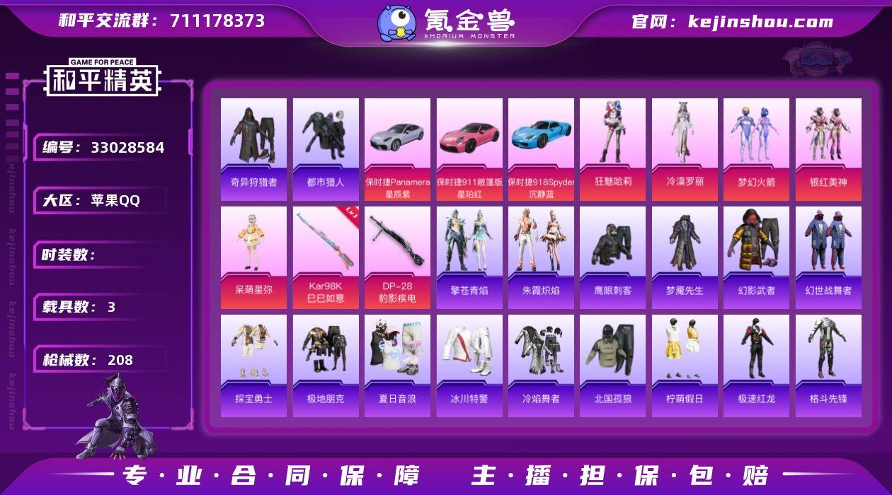 套装/枪械4/装备222/载具3/战备143/王牌印记4/热力值60464/四级UMP45-萌骑冒险/五级Kar98K-巳巳如意/五级Mk14-福马献瑞/五级DP-28-豹影疾电/梦幻火箭/浪漫天命/都市猎人/奇异狩猎者/龟仙人/暗影哥特/银红美神/呆萌星弥/狂魅哈莉/冷漠罗丽/保时捷911敞篷版(星珀红)/保时捷Panamera(星辰紫)/保时捷918Spyder(沉静蓝)/UMP45-萌骑冒险/Kar98K-巳巳如意/Mk14-福马献瑞/DP-28-豹影疾电/炫彩糖果飞行器/梦幻火箭飞行器/幻影战神降落伞/梦幻火箭降落伞/青空秋雨降落伞/第五大道降落伞/炫光之旅降落伞/星梦奇缘降落伞/千金淑猫降落伞/临安公主降落伞/奇迹舞步降落伞/无垠阁降落伞/炫彩糖果降落伞/套装-雪国风尚/套装-炫彩糖果/套装-小财神当家/套装-马上有钱/套装-迅捷龙虾/糖糖葫芦/青团波波/都市丽猫/燕燕于飞/鱼渊荷华/海琴烟/朱霞炽焰/套装-凌霄紫焰/擎苍青焰/角色-绯色魅影/套装-书海巡游/套装-画境星梦/套装-琴音绮想/套装-雨过天青/套装-红釉青花/AUG-冰晶雪宝/AKM-奇异狩猎者/AKM-彩虹符号/AKM-影袭/AKM-环太平洋/AKM-破晓战魂/AKM-虎虎生威/AKM-霓虹街区/AKM-龙的传人/M16A4-甜心亚梦/M16A4-红色方程式/SCAR-L-玉兔迎春/SCAR-L-碧影闪光/SCAR-L-红色方程式/SCAR-L-龙宫之主/M4...