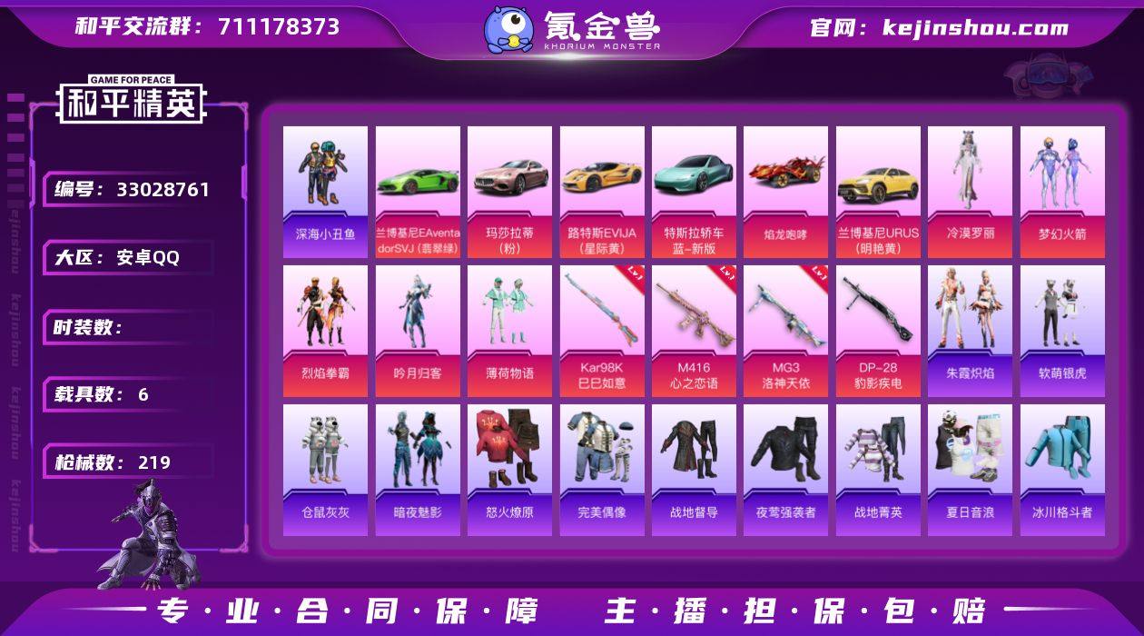 【N2149】160套装/枪械6/装备244/载具6/战备143/王牌印记5/热力值73826/七级M416-心之恋语/五级Kar98K-巳巳如意/五级Mk14-福马献瑞/四级AA12-G-萌骑幻想/五级DP-28-豹影疾电/七级MG3-洛神天依/梦幻火箭/深海小丑鱼/龟仙人/烈焰拳霸/吟月归客/薄荷物语/冷漠罗丽/特斯拉Roadster(水滴蓝)/兰博基尼Aventador SVJ(翡翠绿)/兰博基尼URUS(明艳黄)/路特斯EVIJA(星际黄)/玛莎拉蒂Ghibli(粉)/焰龙咆哮/M416-心之恋语/Kar98K-巳巳如意/Mk14-福马献瑞/AA12-G-萌骑幻想/DP-28-豹影疾电/MG3-洛神天依/炫彩糖果飞行器/梦幻火箭飞行器/幻星舰长飞行器/深海曼妙降落伞/梦幻火箭降落伞/炫紫旋律降落伞/四圣焕新降落伞/阿狸红降落伞/激战未来降落伞/银刃赛罗降落伞/童趣迷兔降落伞/林间仙鹿降落伞/洛神天依降落伞/碧影闪光降落伞/闪光银龙降落伞/精灵梦叶罗丽降落伞/幻星舰长降落伞/冷漠罗丽降落伞/极意拳锋降落伞/炫彩糖果降落伞/套装-炫彩糖果/套装-马上来财/套装-迅捷龙虾/星影赞美诗/套装-极速光影/彩虹兔/云朵鹅/雪绒豹/蓝海鲸歌/朱霞炽焰/套装-凌霄紫焰/AKM-夜灯/AKM-春暖花开/AKM-玉龙/AKM-破晓战魂/AKM-筑梦精灵/AKM-萌趣颜团子/AKM-虎虎生威/AKM-锦绣火鲤/AKM-霓虹街区/AKM-龙的传人/M1...