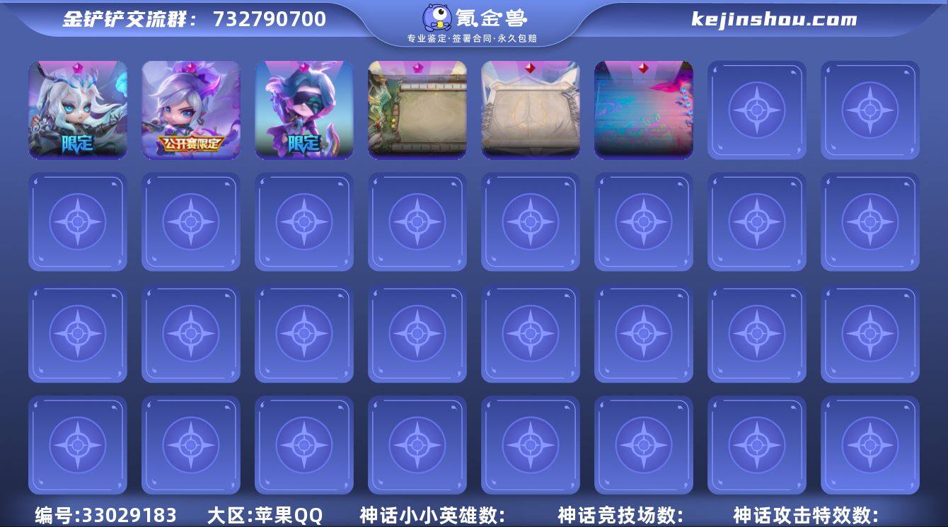 MCK633160 【精品V8可二次云鹤仙观3神话,双灵魂莲华锐雯/薇恩,灵魂莲华绽传送门】 英雄数量154 游戏等级164 【苹果QQ】 【可修改】 【支持包赔】 【无防沉迷】 【黄铜】 【V8】 【破败军团】 神话英雄3 神话竞技场1 传说竞技场2 传送门特效(英雄级)1 神话英雄:灵魂莲华小小薇恩Uzi纪念限定,灵魂莲华小小锐雯,月华之子 海月神小小佛耶戈; 神话竞技场:云鹤仙观; 传说竞技场:金克丝的卧室,德玛西亚团结圣坛; 传送门特效(英雄级):灵魂莲华绽灵花门;