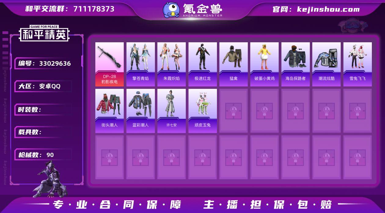 次协助处理】【因赛季更新游戏段付以上号为准!】 安卓Q-1粉装5特效枪2热门40套装90枪皮 4印记 历史超级王牌14星 【1粉装】 罪夜之冕 【5特效枪】 SCAR-L-灵驹仙姬 (3级) AKS-74U-森灵之息 (5级) DP-28-豹影疾电 (5级) Mk14-福马献瑞 (5级) ACE32-萌骑漫游 (4级) 【2热门】 破蛋小黄鸡 极速红龙 【1头盔】 金羽特工头盔
