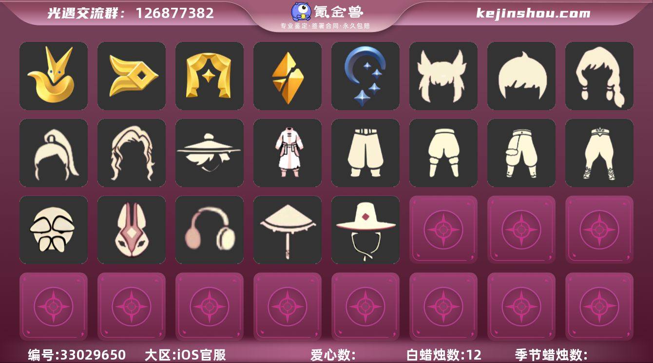 "5季武士裤玫瑰白枭蛛网音韵吉他祥云伞南瓜枯角 编号:YXB13233 区服:苹果 翼数量:210季卡数:5 资源:蜡烛12 爱心23 红蜡27 已毕业地图:雨林 霞谷 毕业季节: 小王子季 风行季 表演季 破晓季 夜行季 热门礼包: 玉兔头饰 四叶草头饰 巫树犄角 蛛网斗篷 冥龙南瓜 音韵吉他 祥云纸伞 热门复刻:白棉裤 搓澡巾 灯笼裤 武士裤 过膝长袍 鼬鼠面具 老爷爷面具 粗辫 书虫 正太 高马尾 明制帽 箬笠 花环 虚荣 军帽 樱花头 单片羽毛 红耳机 飘带耳坠 红金斗 白金斗 蔚紫斗 道袍 小浣熊斗 樱花斗 绿芽斗 彩虹斗 雨伞 星星灯 女巫茶桌",白枭发型