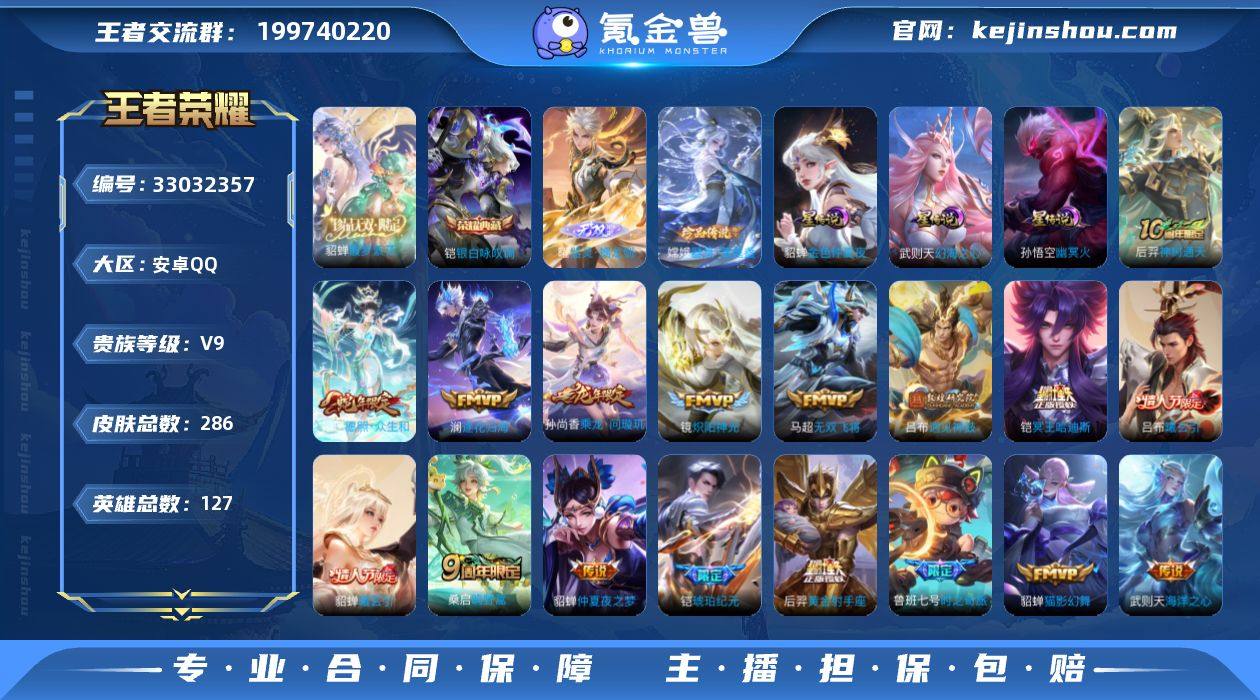 【精品V9号貂蝉珍品无双幻海之心铠典藏李信曜无双嫦娥珍品27个高质量传说2天幕3星传说】安卓Q-V9-最强王者段位-127英雄-286皮肤-1典藏皮肤-1珍品无双-2无双-1珍品传说-27传说-66史诗【英雄全皮】:刘禅全皮,金蝉全皮,影全皮【荣耀典藏】:铠银白咏叹调【珍品无双】:貂蝉馥梦繁花【无双皮肤】:李信问心剑,曜器灵螭龙剑【珍品传说】:嫦娥器灵落星盏【传说皮肤】:貂蝉神骥聚万邦,后羿神树通天,妲己愿照众生和,桑启鸣野蒿,铠冥王哈迪斯,吕布曦玄引,貂蝉曦玄引,孙尚香乘龙问璇玑,铠琥珀纪元,澜逐花归海,鲁班七号时之奇旅,吕布遇见神鼓,王昭君星穹之声,孙尚香音你闪耀,后羿无尽星芒,马超无双飞将,孙尚香异界灵契,王昭君乞巧织情,李元芳飞鸢探春,铠绛天战甲,镜炽阳神光,虞姬启明星使,貂蝉猫影幻舞,后羿黄金射手座,貂蝉仲夏夜之梦,孙悟空地狱火,武则天海洋之心【限定皮肤】:铠冥王哈迪斯,姜子牙天穹之誓,狄仁杰阴阳师,赵云皇家上将,孙尚香蔷薇恋人,孙尚香异界灵契,鲁班七号时之奇旅,庄周高山流水,钟无艳超时空战士,扁鹊奇幻香踪,白起夜都怪侠,芈月幻夜卜梦,吕布遇见神鼓,元歌无心,甄姬落雪兰心,狄仁杰魔术师,达摩沙漠行僧,项羽海...