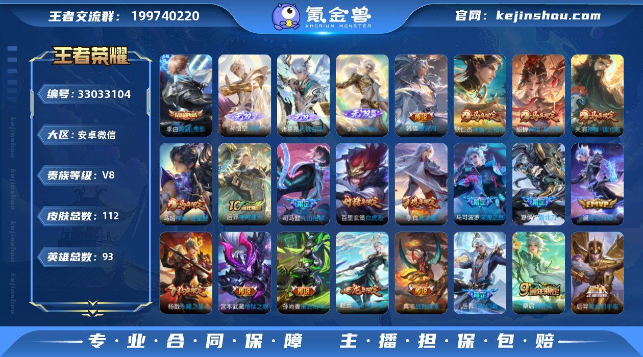 精品小号,1典藏,3无双,28传说,3星传说,安卓WX-V8-永恒钻石III段位-93英雄-112皮肤-1典藏皮肤-3无双-28传说-41史诗 【英雄全皮】:敖隐全皮 【荣耀典藏】:李白鸣剑曳影 【无双皮肤】:孙悟空无相,诸葛亮天机白泽,李白碎月剑心 【传说皮肤】:韩信踏浪归,关羽神骥镇沧海,狄仁杰神骥赴朔漠,貂蝉神骥聚万邦,马超神骥逐星野,后羿神树通天,司马懿九山相柳,后羿千劫归真,嬴政玄雷天君,桑启鸣野蒿,夏侯惇霜北刀,典韦战鼓燎原,赵云乘龙铭钟鼎,澜逐花归海,马可波罗深海之息,铠绛天战甲,虞姬启明星使,刘备时之恋人,张良黄金白羊座,百里玄策白虎志,梦奇胖达荣荣,后羿黄金射手座,杨戬永曜之星,李白凤求凰,孙尚香末日机甲,宫本武藏地狱之眼,孙悟空地狱火,武则天海洋之心 【限定皮肤】:夏侯惇霜北刀,暃埋骨钱,狄仁杰阴阳师,赵云皇家上将,墨子降魔,元歌云间偶戏,元歌无心,马可波罗深海之息,狄仁杰魔术师,项羽海滩派对,露娜一生所爱,孙悟空至尊宝,孙悟空大圣娶亲,后羿辉光之辰,虞姬启明星使,杨戬永曜之星,百里玄策白虎志,盘古冰霜神祇,李白碎月剑心,赵云乘龙铭钟鼎 【年限皮肤】:李白凤求凰,杨戬永曜之星,后羿辉光之辰,百里玄策白...
