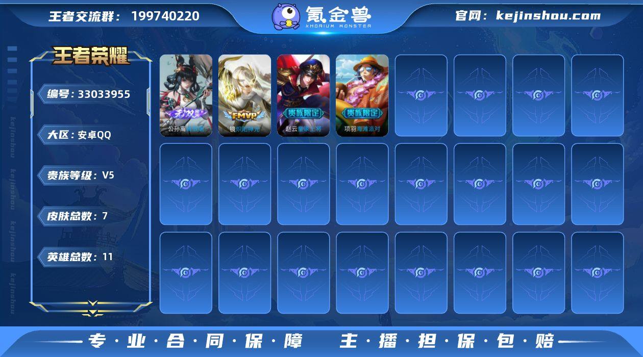 V5 1无双 1传说 7皮肤 11英雄 【1无双】公孙离-离恨烟【1传说】镜-炽阳神光【1史诗】赵云-皇家上将