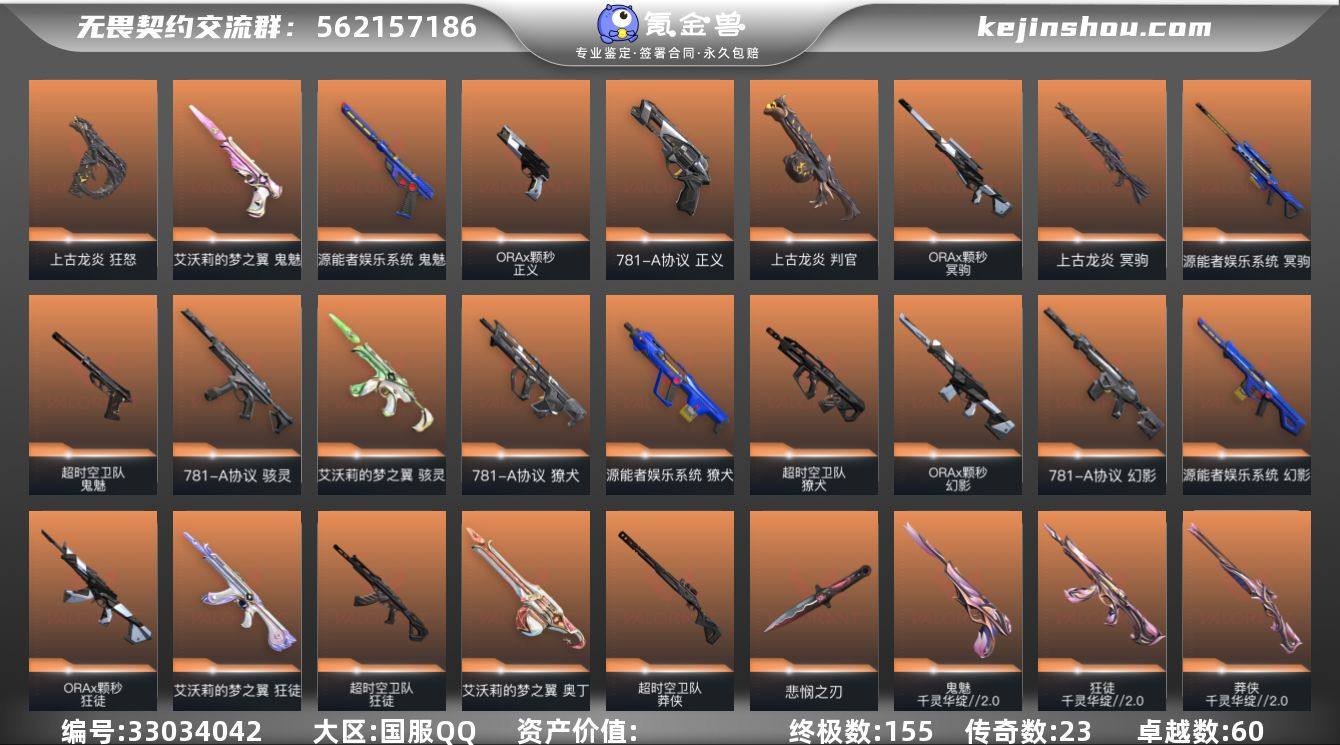 【Hww604】国服Q区 皮肤价值428320【155橙皮 23金皮60紫皮 427皮肤28英雄 344卡面 3795已用源晶】 青铜-优质装备:离火刃套装,2025全球冠军赛套装,2024全球冠军赛套装,2021全球冠军赛套装,艾沃莉的梦之翼套装,RGX 11z Pro//3.0套装,塑水宗套装 【套装】:离火刃套装,2025全球冠军赛套装,2024全球冠军赛套装,2021全球冠军赛套装,超时空卫队套装,源能者娱乐系统套装,艾沃莉的梦之翼套装,无畏契约季前邀请赛套装,回火礼包// V25套装,千灵华绽//2.0套装,ORA x 颗秒套装,多弥尔的复仇套装,混沌序曲//2.0套装,末日泡泡套装,滋滋X特攻队套装,噬影者套装,VCT 2025 赛季套装,西部未来套装,创·纪元套装,RGX 11z Pro//3.0套装,塑水宗套装,离火刃套装,《双城之战》收藏套装,光明哨兵//2.0套装,全息波普套装,奇点//2.0套装,归零者套装,黯夜怪谈套装,机动狂飙套装,VCTxEDG 队伍套装,回火礼包:奇点套装,掠影//2.0套装,神中神罚套装,盖亚的复仇//2.0套装,紫阙金琅套装,耀鳞威龙套装,紫阙金琅//2.0套装,般若假面//2.0套装,原子裂解套装 【英雄】:幻棱,炼狱,维斯,暮蝶,钛狐,壹决,铁臂,捷风,雷兹,幽影,不死鸟,贤者,猎枭,蝰蛇,零,芮...