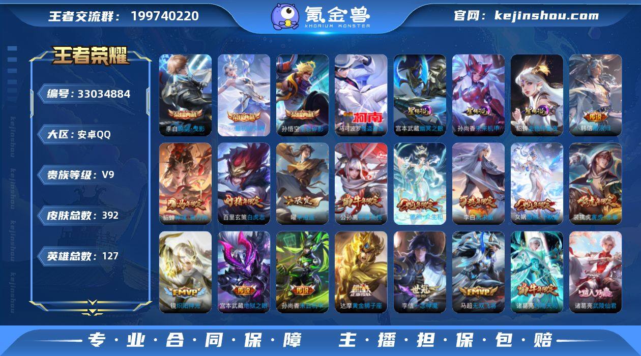 【V9 3典藏 1珍品 3星传说 36传说 392皮肤 127英雄】梅西 至尊宝 神威 怪盗基德 鸣剑·曳影,全息碎影,最初的交响 李逍遥,凤求凰,白虎志,云鹰飞将,一念神魔,逐花归海,寅虎·赤拳,祈雪灵祝,胖达荣荣,炽阳神光,久胜战神,武陵仙君,时雨天司,无双飞将,仲夏夜之梦,猫影幻舞,黄金射手座,末日机甲(孙尚香),地狱火,地狱之眼,超时空战士(狄仁杰),武圣,黄金狮子座,冠军飞将,音你心动(周瑜),云霓雀翎,启明星使,战鼓燎原,绛天战甲,鸣野蒿,玄雷天君,幻光神枪,愿照·千秋盛,愿照·众生和,神骥·聚万邦,踏浪归 金色仲夏夜,幽冥之眼,未来机甲 16/0 卡摩托16 df89-81,编号:WPANR05