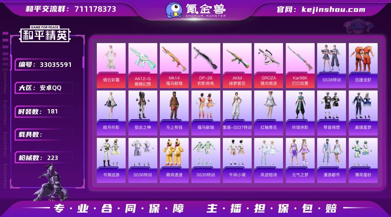 【0载具 6特效枪 1粉装 223枪皮 181套装】老六服 套装-雪山精英,套装-老实芭蕉,角色-烟云彩露 AKM-绿萝繁花,GROZA-镜光银凌,Kar98K-巳巳如意,Mk14-福马献瑞,AA12-G-萌骑幻想,DP-28-豹影疾电 狂鲨锋刃飞行器,马上有福飞行器,炫彩糖果飞行器,鸡智如我飞行器,异域银装飞行器,编号:ZPXFW65