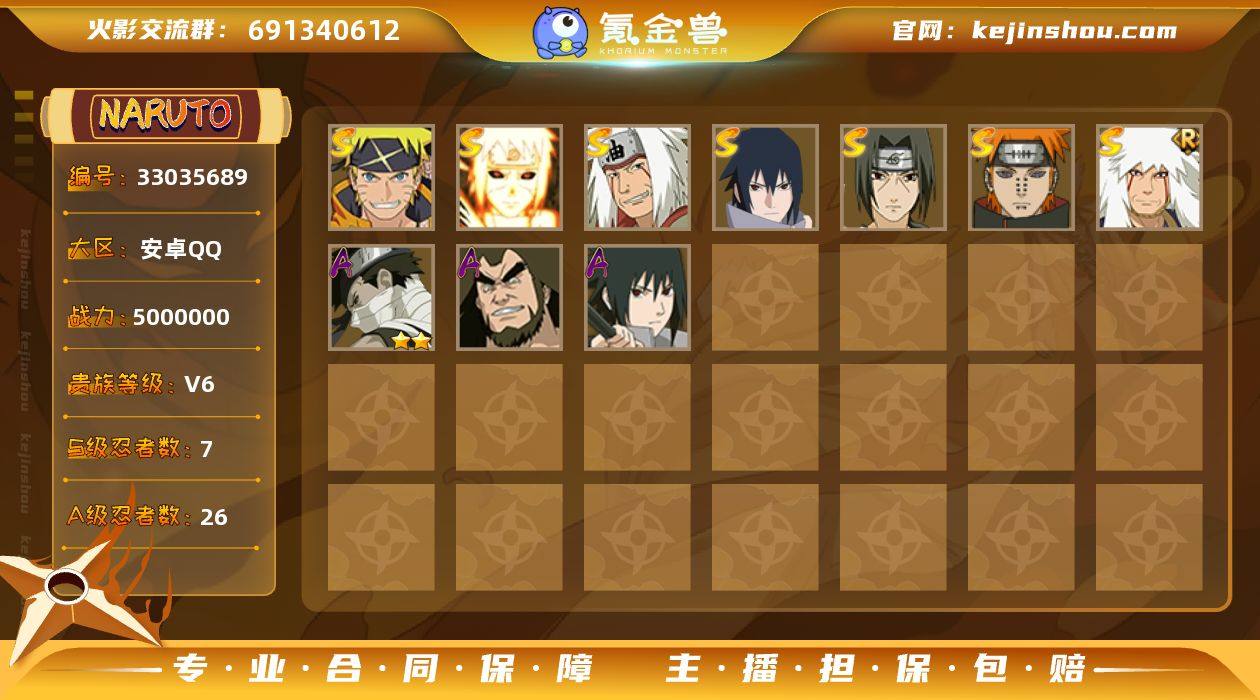 【V6 7S忍 26A忍 114忍 15通灵】7S忍26A忍 500万战斗力 自来也·传说中的三忍,宇智波佐助·永恒万花筒,漩涡鸣人·宇智波佐助,宇智波鼬·须佐能乎,佩恩·天道,自来也·舞之豪杰,波风水门·九喇嘛连结 q1-4 df14-71,编号:WPBEF59
