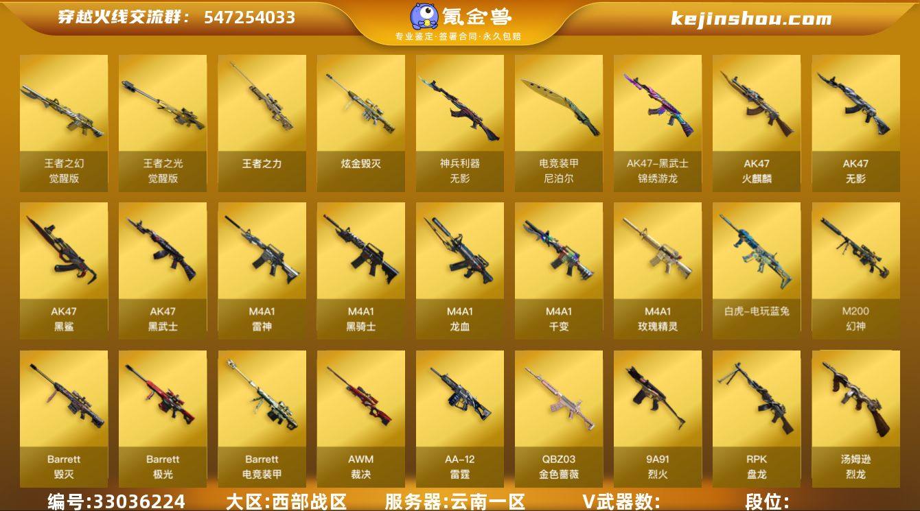 zx1988【沙漠玫瑰炽芒蝶刃+六列蝴蝶六盘炼狱幻神白虎电玩双全装】【云南一区】【可二次实名】【可排位】【新锐1】【会员等级VIP6】【CF点23450】【V武器数120】【6烈龙】【斯泰尔-蝴蝶】【M200-幻神】【AWM-裁决】【白虎-电玩蓝兔】【QBZ03-金色蔷薇】【炽芒蝶刃】【加特林-炼狱】【RPK-盘龙】【魂·炼狱-玩具枪】【汤姆逊-烈龙】【斯泰尔-蝴蝶】【葵】【沙漠玫瑰】【王者涂鸦】【樱】【魅影】【M4A1-雷神】【雷神-机甲刑天皮肤】【AK47-火麒麟】【火麒麟-心动糖果】【火麒麟-百城】【火麒麟-雷神】【M4A1-黑骑士】【M4A1-黑骑士音效卡】【黑龙-暗月】【Barrett-毁灭】【毁灭耀金皮肤】【毁灭-星空】【Barrett-毁灭音效卡】