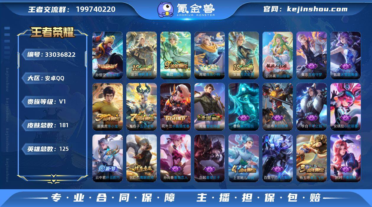 安卓Q-V1-永恒钻石II段位-125英雄-181皮肤-1典藏皮肤-2传说-39史诗 【荣耀典藏】:孙悟空全息碎影 【传说皮肤】:后羿神树通天,桑启鸣野蒿 【限定皮肤】:姜子牙天穹之誓,狄仁杰阴阳师,孙尚香蔷薇恋人,庄周高山流水,夏侯惇朔风刀,甄姬游园惊梦,狄仁杰万华元夜,达摩沙漠行僧,项羽海滩派对,老夫子醍醐杖,程咬金演武夺筹,兰陵王金庭之子,李元芳云中旅人,钟馗驱傩正仪,杨玉环遇见飞天,蔡文姬繁星吟游,鬼谷子原初探秘者,鬼谷子五谷丰年,苏烈千军破阵,弈星混沌棋,沈梦溪大漠名商,明世隐疑决卦,裴擒虎李小龙,裴擒虎擒涛扼浪,云中君纤云弄巧,上官婉儿梁祝,鲁班大师探海日志,艾琳女武神,张良古海寻踪,鬼谷子天穹祈灯,沈梦溪龙舞盛年,刘邦剑破天穹,周瑜熔金海岸 【赛季限定】:夏侯惇朔风刀,弈星混沌棋,明世隐疑决卦,老夫子醍醐杖,鬼谷子原初探秘者,狄仁杰万华元夜,程咬金演武夺筹,钟馗驱傩正仪,苏烈千军破阵,达摩沙漠行僧,兰陵王金庭之子,沈梦溪大漠名商,李元芳云中旅人,裴擒虎擒涛扼浪,鲁班大师探海日志,张良古海寻踪,鬼谷子天穹祈灯,刘邦剑破天穹,姜子牙天穹之誓,东皇太一噬灭天穹,太乙真人谧流熔炉,钟馗虚灵犬护,甄姬逆浪荇...