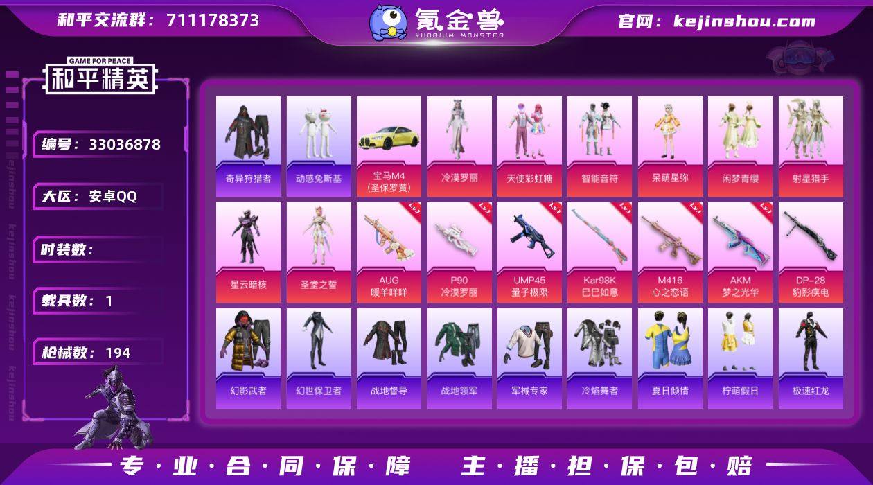 【满级心之恋语 哥特 满地铁天赋】c29434-【可二次】【因赛季更新游戏段付以上号为准!】 安卓Q-2稀有1载具9粉装9特效枪14热门145套装194枪皮 17印记 历史绝世王牌19星 【2稀有】 奇异狩猎者 浪漫天命 【1载具】 宝马M4(圣保罗黄) 【9粉装】 圣堂之誓 天使彩虹糖 冷漠罗丽 呆萌星弥 幻影战神 射星猎手 闲梦青缨 星云暗核 智能音符 【9特效枪】 M416-心之恋语 (7级) P90-冷漠罗丽 (7级) Kar98K-巳巳如意 (5级) DP-28-豹影疾电 (5级) AUG-暖羊咩咩 (5级) UMP45-量子极限 (5级) AKM-梦之光华 (7级) Mk14-福马献瑞 (4级) ACE32-萌骑漫游 (5级) 【14热门】 Mark.06 龟仙人 动感兔斯基 晶辉守护 NV战队服 暗影哥特 忍者信条 破蛋小黄鸡 极速红龙 弄潮海豚 M762-奇异狩猎者 M24-奇异狩猎者 S686-奇异狩猎者 Vector-风花雪月 【2飞行器】 祥瑞锦鲤飞行器 萌物绒绒飞行器 【2头盔】 幻影战神头盔 花间之火头盔 【4背包】 甜心宝贝背包 幻影战神背包 甜蜜誓约背包 花间之火背包