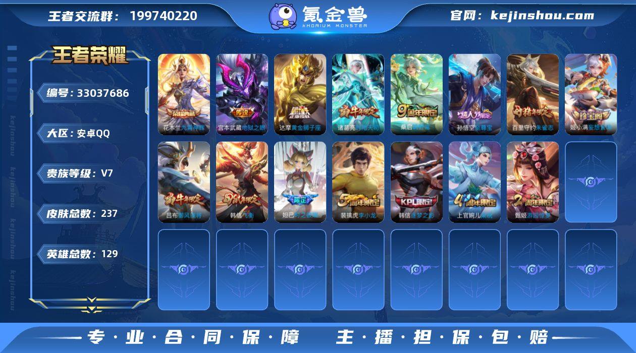 安卓Q 不可二次 1典藏6传说129英雄237皮肤 九霄神辉 战鼓燎原 异界灵契花木兰 鸣野蒿 时雨天司 黄金狮子座 地狱之眼 至尊宝 朱雀志 时雨天司 御风骁将 飞衡 逐梦之影 时之彼端 猎兽之王 神迹守卫钟馗 狮舞东方 星空之诺 银河之约 冰冠公主 原初追逐者 梁祝 苍穹之光 无限星赏官 原初探秘者 李小龙 水晶猎龙者 暗隐猎兽者 猫狗日记男 金属风暴 地狱岩魂 白昼王子 热力回旋 特工魅影 曙光守护者 特工战影 黄金分割率 妄想食味 逐浪之夏 千年之狐 紫霞仙子 功夫厨神 心灵骇客 圣诞恋歌 幽灵船长 乘风破浪 圣诞狂欢 永昼 节奏热浪 天才门将 绅士熊喵 偶像歌手 街头霸王 乐园奇幻夜 月团寄思 缤纷独角兽 鬼剑武藏 花好人间 饕餮 烛龙 重明 穷奇 御狮 御霄 御旌 御銮 朔风刀 混沌棋 疑决卦 醍醐杖 万华元夜 东方不败 演武夺筹 群星魔术团程咬金 驱傩正仪 如懿 千军破阵 拳王 沙漠行僧 女仆咖啡 金庭之子 大漠名商 王者荣耀账号