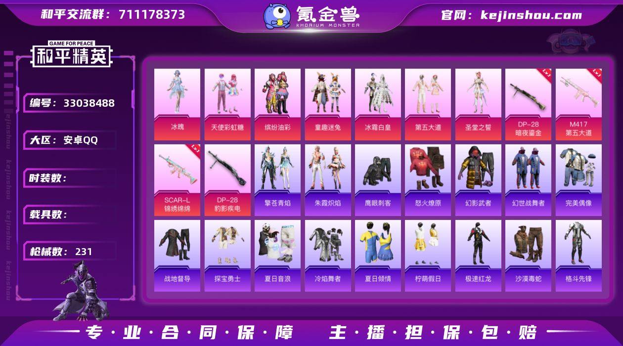 满地铁天赋】c29255-【无二次协助处理】【因赛季更新游戏段付以上号为准!】 安卓Q-1稀有8粉装7特效枪13热门182套装231枪皮 15印记 历史绝世王牌16星 【1稀有】 浪漫天命 【8粉装】 冰魄 圣堂之誓 天使彩虹糖 异瞳寒姬 缤纷油彩 第五大道 童趣迷兔 冰霜白皇 【7特效枪】 SCAR-L-锦绣绵绵 (5级) AKS-74U-森灵之息 (5级) DP-28-豹影疾电 (5级) M417-第五大道 (5级) DP-28-暗夜鎏金 (6级) Mk14-福马献瑞 (5级) AA12-G-萌骑幻想 (2级) 【13热门】 龟仙人 红熊茄茄 鹰眼刺客 暗影哥特 团圆交子 瑞龙福将 漫步者 破蛋小黄鸡 极速红龙 弄潮海豚 M762-奇异狩猎者 M762-瑞龙福将 M24-奇异狩猎者 【3飞行器】 繁龙极客飞行器 黄族统领飞行器 太空嘟嘟飞行器 【2头盔】 童趣迷兔头盔 梦幻火箭头盔