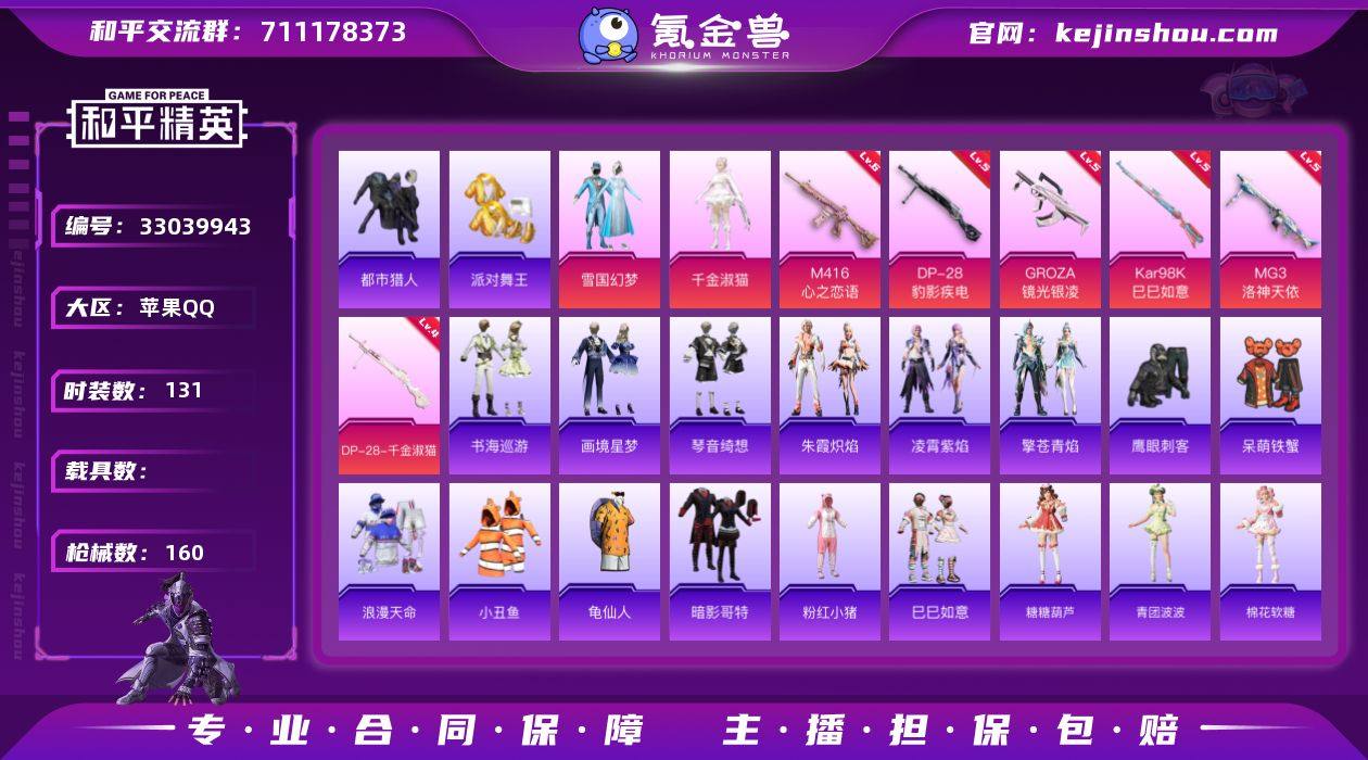 YZJ16625-可二次-苹果Q-4稀有2粉装8特效枪9热门131套装160枪皮 46004热力值 极品身法素材号 地铁满天赋 100多天特权卡 雪国 千金淑猫 都市 金鞋 红眼罩 天命 小丑鱼 6级M4心之恋语 5级MG3洛神天依 4级DP28千金淑猫 12印记 历史超级王牌11星 【4稀有】 都市猎人 浪漫天命 派对舞王 派对舞王(金靴子) 【2粉装】 雪国幻梦 千金淑猫 【8特效枪】 M416-心之恋语 (6级) Kar98K-巳巳如意 (5级) DP-28-千金淑猫 (4级) DP-28-豹影疾电 (5级) GROZA-镜光银凌 (5级) MG3-洛神天依 (5级) Mk14-福马献瑞 (5级) UMP45-萌骑冒险 (3级) 【9热门】 小丑鱼 龟仙人 呆萌铁蟹 鹰眼刺客 暗影哥特 粉红小猪 漫步者 破蛋小黄鸡 极速红龙 【3头盔】 雪国精灵头盔 幻影战神头盔 深海小丑鱼头盔 【2背包】 雪国精灵背包 幻影战神背包 营地ID:790791074