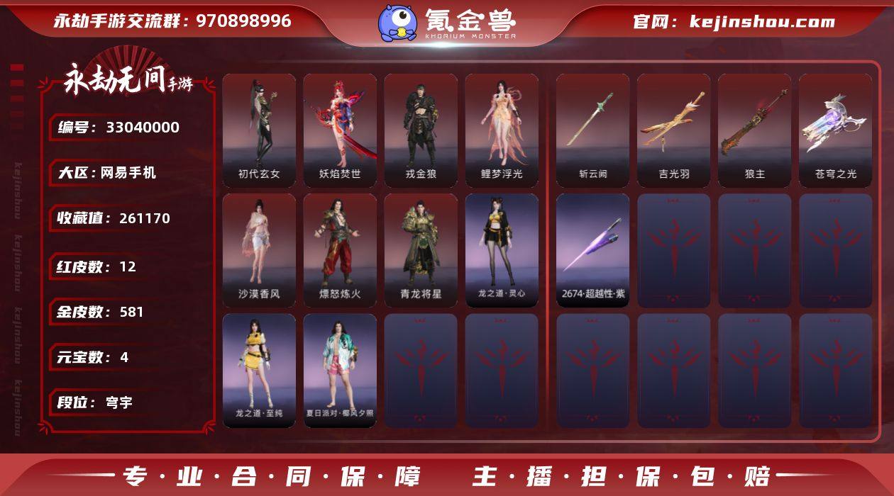 WJ5858,网易手机手游,可换绑,网易支付无法注销,四人段位穹宇2,39万幻丝,12红,581金,蕊歌,炎烈珠,赤瑛,炽切,2674超越型紫,吉光羽,斩云阙,狼主,苍穹之光,熛怒炼火,初代玄女,戎金狼,鲤梦浮光,沙漠香风,青龙将星,妖焰焚世,至纯,灵心,椰风夕照,残阳镀,乘黄之风,莲心剑雨,金财聚辉,神龙刀,三更令,翠影,青鸟,石中火