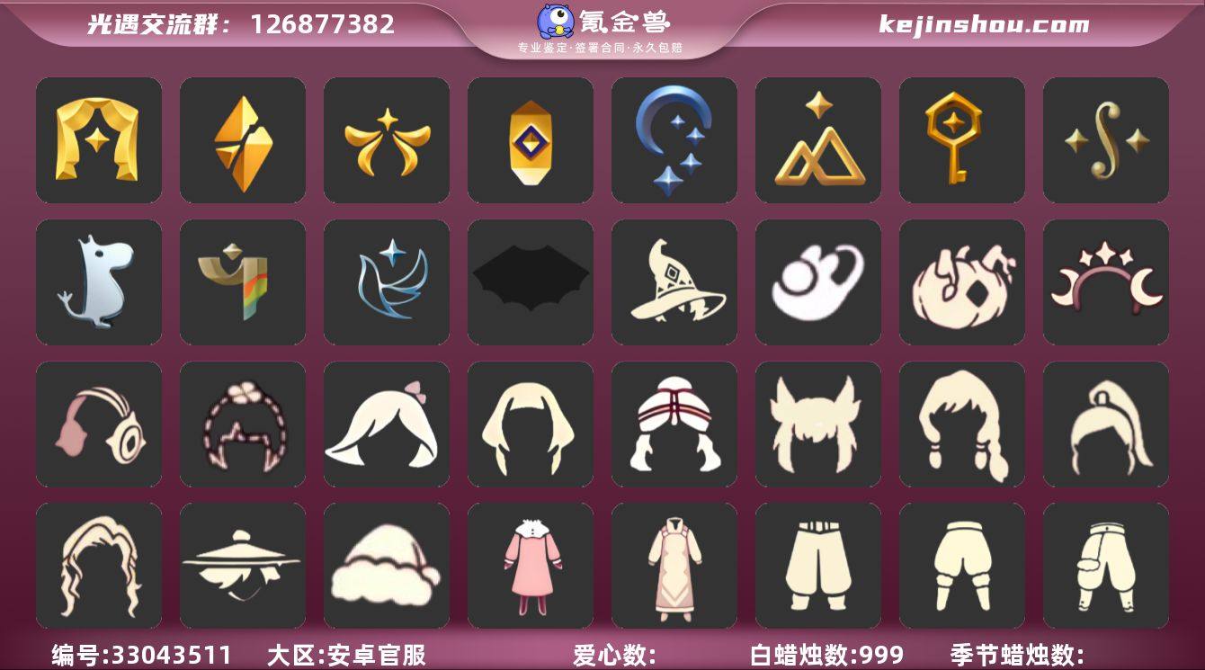 13季10翼白枭透明蝶翼蝙蝠斗巫师帽武士裤拖鞋圣诞鹿角耳机鲲灯 资源:蜡烛1308 爱心371 红烛261 10翼 已毕业地图:雨林 霞谷 墓土 毕业季节:表演季 破晓季 欧若拉季 追忆季 夜行季 拾光季 筑巢季 二重奏季 姆明季 彩染季 青鸟季 归巢季季卡 九色鹿季季卡 毕业季节物品: 燕尾斗篷 黄眉企鹅面具 白枭发型 双翼遥鲲斗篷 冥龙斗篷 留辨蘑菇头 高领舞服 透明蝶翼斗 肩带 追忆之书 棕熊面具 绒毛斗篷 粗框眼镜 季卡相机 西部帽 设计师长袍 光之子试衣 合奏挂画 蓝色燕尾服 白色高脚钢琴 姆明抱枕 姆明大伞 姆明长裙 彩染围巾斗篷 辉光羚羊面具 青鸟面饰 青鸟斗篷 稀有礼包:玉兔拖鞋 祥云瑞气服饰 南瓜头 巫师帽 大桔大利 雪花发饰 星月头冠 圣诞鹿角 彩虹耳机 蝙蝠斗 冥龙南瓜 热门裤子:背带裤 遥鲲长袍 绑带舞服 奔月长袍 妮妮长裙 海洋武士裤 白棉裤 搓澡巾 紧身连体衣 武士裤 小丑服 女仆围裙 美工衣 红色流珠裙 探险燕尾服 祥云瑞气服饰 热门面具:矮人面具 狐狸面具 黄鼠狼面具 一字眉 棕熊面具 盲僧眼罩 向导面具 青鸟面具 龙头 玫瑰花面具 玫...