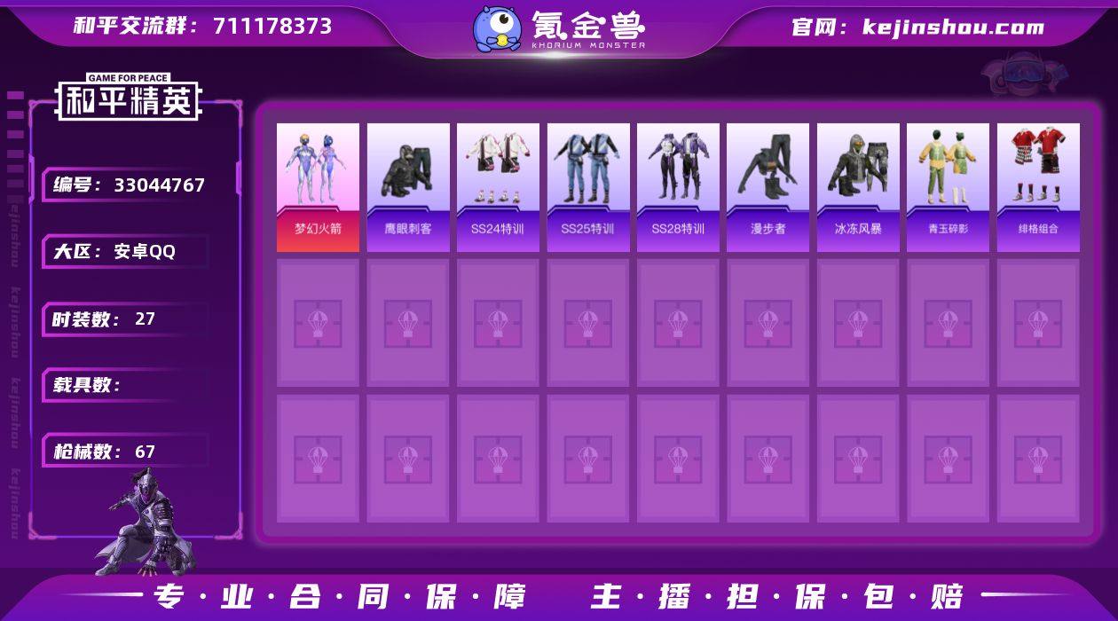 M1047440【1粉装 梦幻火箭】无二次包安卓手Q-1粉装-27套装-67枪皮-0王牌印记-英勇黄金Ⅰ-13967热力值【1粉装】梦幻火箭【1头盔】梦幻火箭头盔【1背包】梦幻火箭背包【93其它衣服和枪皮】竞技名士,魅力单车,猛禽,SS24特训,SS37特训,冰冻风暴,青玉碎影,SS25特训,长空猛禽,潮流炫酷,鹰眼刺客,灼焰舞者,柠萌假日,绯格组合,SS36特训,SS23特训,SS28特训,荣耀,坚韧舞者,龙的传人,甜蜜告白,空岛之星,漫步者,缤纷果语,狙击之神,耀眼新星,SKS-糯团青竹,M416-蓝色火焰,莫辛纳甘-乌木金纹,蜜獾-启元战纹,S12K-玩趣呆呆,M416-红色方程式,G36C-星穹咏叹调,AWM-天降萌叽,S12K-破晓战魂,破片手榴弹-呆爆全场,M416-糯团青竹,M24-炫彩节奏,汤姆逊-天降萌叽,平底锅-空岛之星,DP-28-彩虹符号,M16A4-红色方程式,AKM-破晓战魂,QBZ-彩虹符号,M762-天降萌叽,UMP45-涂山之恋,M249-破晓战魂,S686-红色方程式,AC-VAL-闲梦青缨,汤姆逊-像素花束,SCAR-L-炫彩节奏,Kar98K-红色方程式,M16A4-蓝色火焰,GROZA-福马献瑞,M24-影袭,GROZA-影袭,SCAR-L-海盐豹豹,AUG-耀粉歌者,破片手榴弹-海盐豹豹,Mini14-耀粉歌者,Mini14-炫彩节奏,ACE32-冰晶雪宝,UMP45-蓝色火焰,Mk47-乌木金纹,UZI-啾咪啾咪,蜜獾-天降萌叽,AKM-彩...