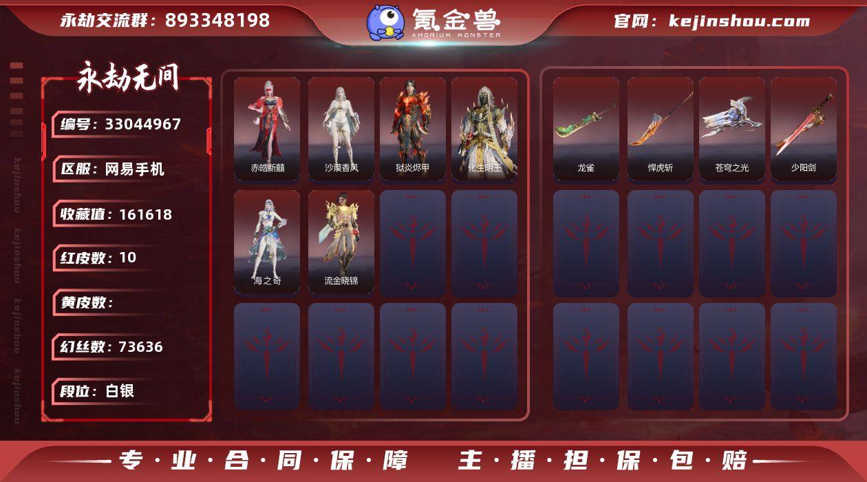 WJ5847,网易手机,5月3日可换绑,三人段位白银1,10红,196金,声望17,绿野守护竹韵悠,少阳剑,龙雀,悍虎斩,苍穹之光,赤皓新囍,化生明王,狱炎烬甲,海之奇,沙漠香风,流金晓锦,华阳针,昆仑之主,觉明尊者,甜夜安眠鹅黄纱梦,新倩女幽魂瑶光沐月,不良人李星云,洛天依星空投影,清雅少女,倒反阴阳铁面,活动中心手机绑定无法解绑