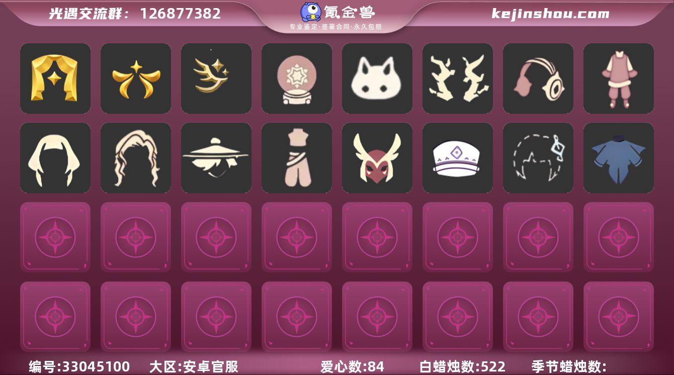 账号类型: 手机账号 季节已毕业: 表演季,欧若拉季,迁徙季 珍稀物品: 白枭,透明蝶翼斗 礼包: 雪花球,兔子,枯角,彩虹耳机,新年裤 裤子: 蓝绿裤 面具: 黄眉企鹅面具 发型: 若笠,虚荣,留辫蘑菇头 头饰: 蓝色音乐会,平顶帽 斗篷: 燕尾斗篷 亮点: 【优质装备】:表演季,白枭(帝企鹅发),透明蝶翼斗,欧若拉季(欧若拉),若笠(箬笠),蓝绿裤(高领舞服),黄眉企鹅面具,留辫蘑菇头,燕尾斗篷,雪花球(雪花水晶球),枯角(巫树犄角),彩虹耳机,新年裤(瑞气服饰),兔子(玉兔头饰)(玉兔发饰)(兔子发饰)