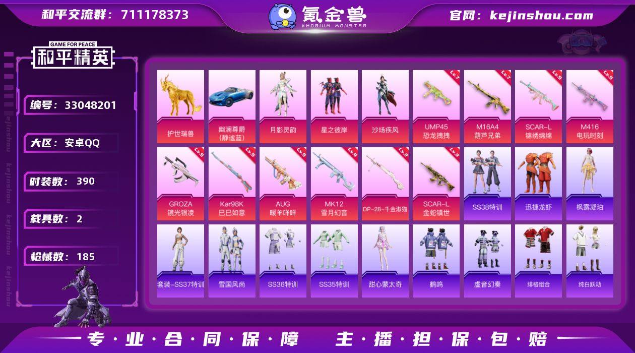 ✅ 核心硬通货:护世瑞兽(金马)+幽澜尊爵(静谧蓝跑车),双载具直接毕业 ✅ 2字优质古风ID,干净无生僻字,颜值拉满,自带溢价 ✅ 未实名可二次实名,完美过户,无找回风险,支持人脸包赔 ✅ 9把热门升级枪,多把5-7级满配,覆盖全枪械类型,上手直接玩 ✅ 185件枪皮、390件时装、16把平底锅,全品类齐全,穿搭自由 ✅ 60级卓越收藏家,6万+热力值,营地在线可验号,走平台包赔交易,安全无忧