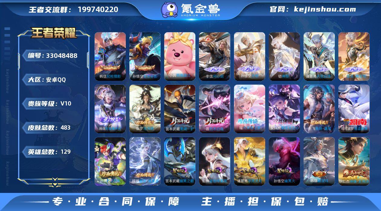 马年限定全套,猴子,韩信全皮,诸葛亮,凯,李信,曜无双都有,还有马年限定天幕,萌赞路比小兵,荣耀水晶抽了100零几次,还有1500积分,70积分夺宝券