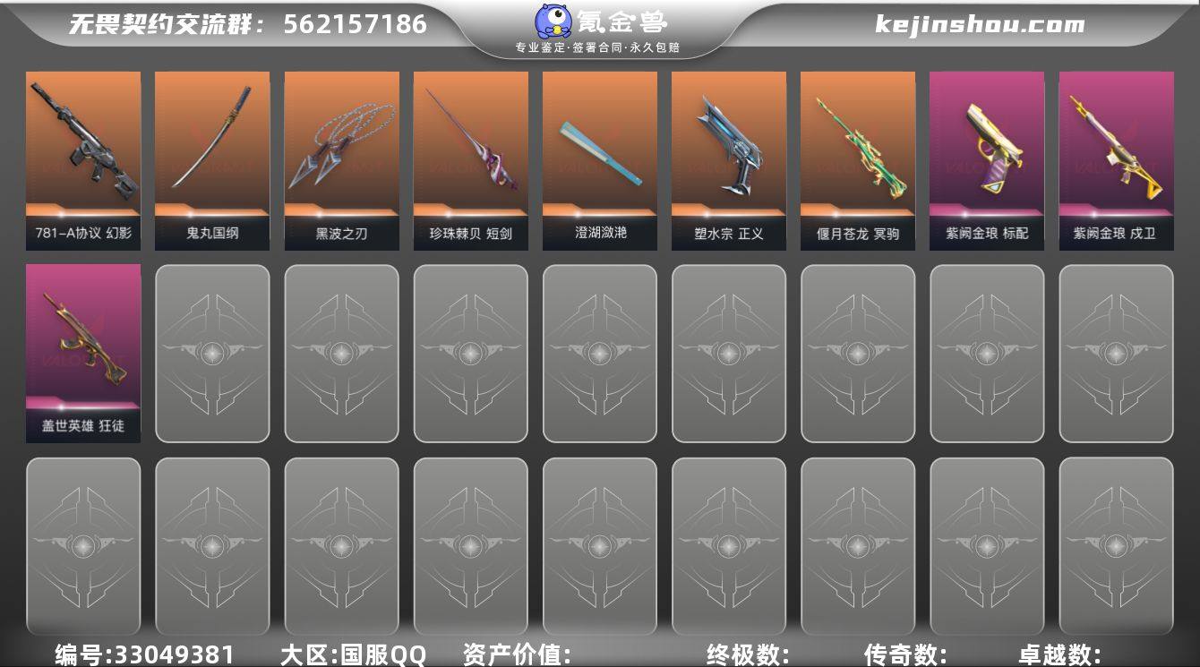 【步枪皮肤】獠犬-般若假面//2.0,狂徒-般若假面//2.0,狂徒-掠影,狂徒-混沌序曲,狂徒-塑水宗,狂徒-盖亚的复仇,狂徒-耀鳞威龙,狂徒-盖世英雄,幻影-781-A协议,戍卫-紫阙金琅