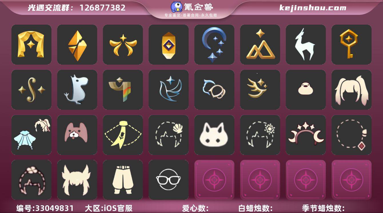 账号类型: 手机账号 季节已毕业: 表演季,破晓季,欧若拉季,夜行季,追忆季,拾光季,九色鹿季,筑巢季,二重奏季,姆明季,彩染季,青鸟季,双星季,迁徙季 完成地图: 雨林,霞谷 珍稀物品: 白枭,透明蝶翼斗 礼包: 围巾,贝壳,兔子,雪花,星月头饰,彩虹耳钉,四叶草,渐变双马尾发型礼包,小狗周年发饰,青衫落拓礼包,小黄鸭发饰礼包 裤子: 武士裤 面饰: 黑框眼镜 发型: 白枭