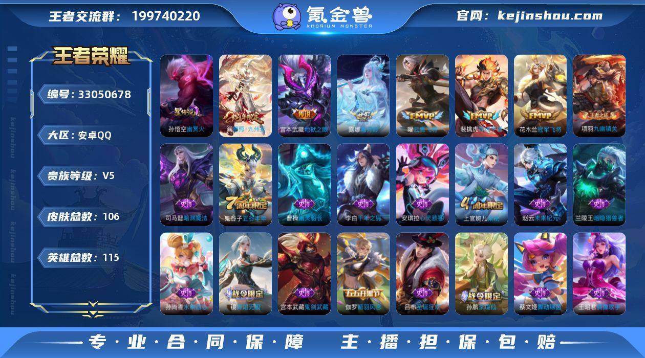 【V5 1星传说 6传说 106皮肤 115英雄】云鹰飞将,地狱之眼,冠军飞将,霜月吟,祥瑞亨通,愿照·九州拓,打野25段,编号:JJLOO82