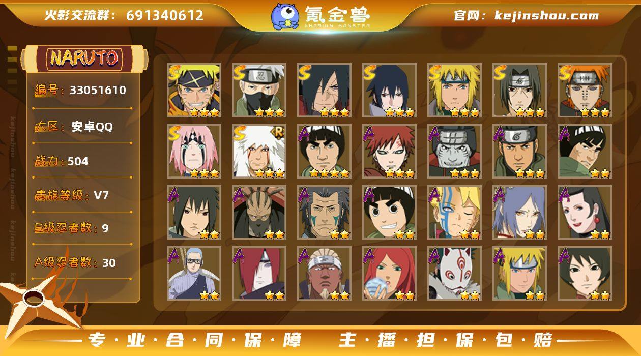 【萌新友好号】y7461 战力504w 9s 30a 3个198点券A 70片传说自来也 94片忍战艾