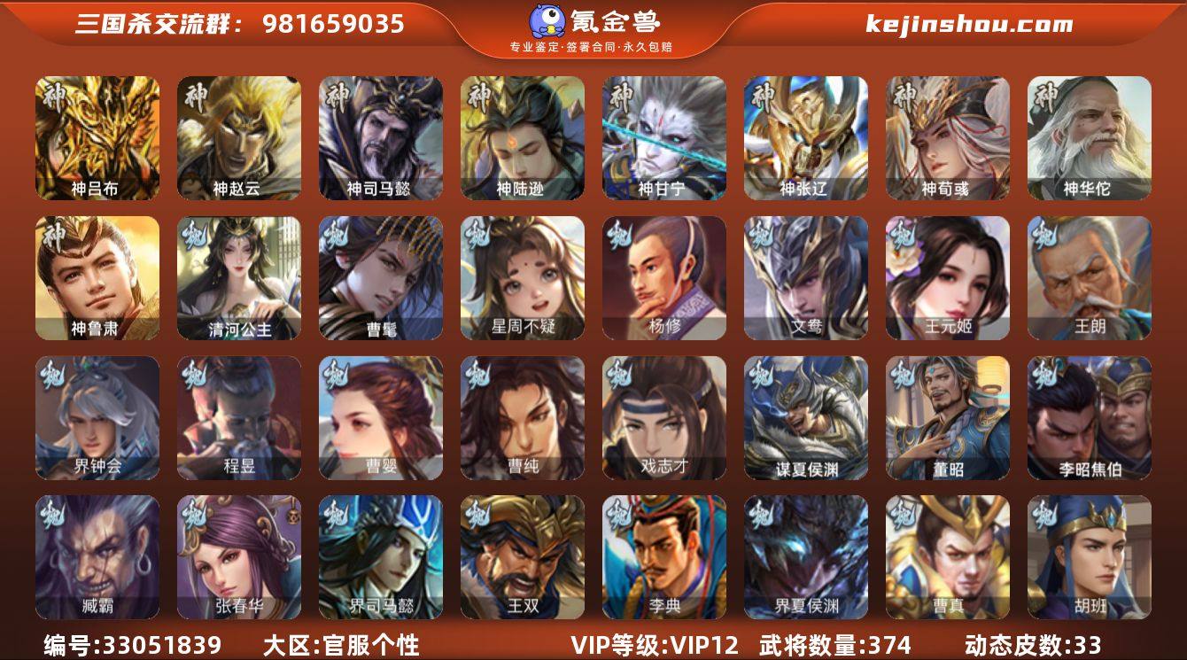 神吕布,神赵云,神司马懿,神陆逊,神甘宁,神张辽,神荀彧,神华佗,神鲁肃,曹髦,星周不疑,杨修,王元姬,王朗,界钟会,曹婴,曹纯,戏志才,清河公主,程昱,谋诸葛亮,谋赵云,诸葛瞻,赵襄,王平,沙摩柯,谯周,花鬘,孙寒华,留赞,界徐盛,贺齐,文鸯,裴秀,左慈,张让,徐荣,星黄忠,星甘宁,苏飞,麹义,刘焉,沮授,界左慈,界李儒,谋张角,许攸,星董卓,笮融,兀突骨,司马昭,SP关羽,SP曹仁,SP蔡文姬,乐进,曹昂,诸葛诞,朱灵,文聘,SP姜维,张春华,钟会,曹冲,郭淮,满宠,界王异,界曹操,界司马懿,界夏侯惇,界张辽,界许褚,界郭嘉,李典,曹真,韩浩史涣,陈群,曹叡,曹休,钟繇,司马朗,李通,郭皇后,孙资刘放,辛宪英,界甄姬,吕虔,鲁芝,蒯越蒯良,界典韦,界荀彧,界徐晃,杜畿,界曹丕,毌丘俭,界邓艾,张恭,界曹植,界曹彰,界满宠,界郭淮,卞夫人,蔡贞姬,袁涣,王双,崔琰,毛玠,阮慧,谋于禁,谋甄姬,谋荀彧,界曹休,牵招,胡班,李昭焦伯,司马伷,谋夏侯渊,界夏侯渊,臧霸,唐咨,董昭,势陈到,SP孙尚香,关银屏,夏侯霸,马良,关兴张苞,廖化,界马岱,关平...