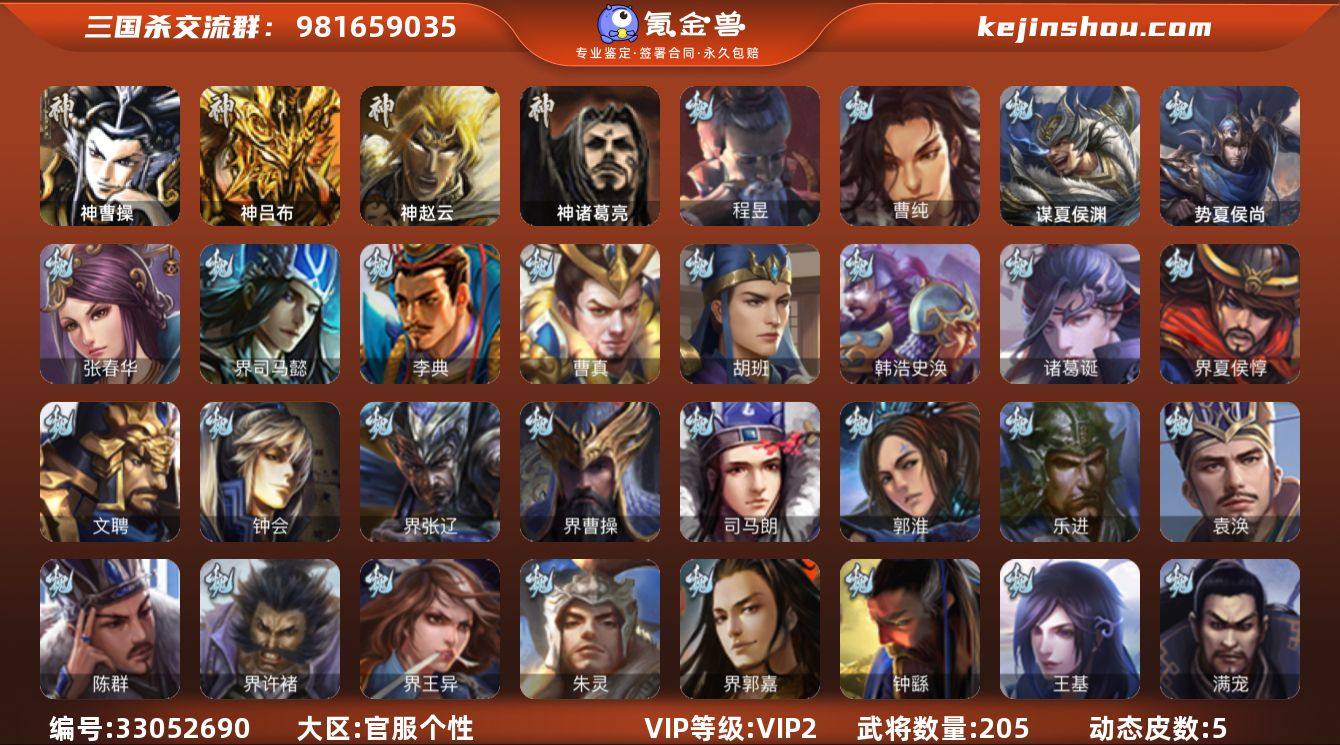 神曹操,神吕布,神赵云,神诸葛亮,曹纯,程昱,谋赵云,沙摩柯,谯周,花鬘,势夏侯尚,SP关羽,SP蔡文姬,乐进,曹昂,诸葛诞,朱灵,文聘,SP姜维,张春华,钟会,曹冲,郭淮,满宠,界王异,界曹操,界司马懿,界夏侯惇,界张辽,界许褚,界郭嘉,李典,曹真,韩浩史涣,陈群,曹叡,曹休,钟繇,司马朗,王基,界曹植,袁涣,谋于禁,胡班,谋夏侯渊,SP孙尚香,夏侯霸,马良,关兴张苞,廖化,界马岱,关平,刘封,界法正,界刘备,界关羽,界张飞,界赵云,SP徐庶,吴懿,周仓,张松,刘谌,黄皓,吕凯,界简雍,王甫赵累,界张嶷,谋张飞,吴班,诸葛果,蒋琬费祎,甘夫人,鲁肃,诸葛瑾,孙鲁育,程普,韩当,潘璋马忠,虞翻,界甘宁,界吕蒙,界黄盖,界周瑜,界大乔,界陆逊,孙鲁班,朱桓,顾雍,孙登,界孙权,界孙坚,孙邵,陈武董袭,蒋钦,界顾雍,界孙鲁班,谋韩当,界孙休,谋小乔,界小乔,友庞统,伏完,刘协,界袁术,SP赵云,张宝,伏皇后,李儒,华雄,袁术,界华佗,公孙瓒,蔡夫人,严白虎,刘虞,樊稠,界公孙瓒,韩遂,羊祜,谋刘赪,何进,势田丰,乐就,神赵云-战龙在野(动态),神吕布-监兵...