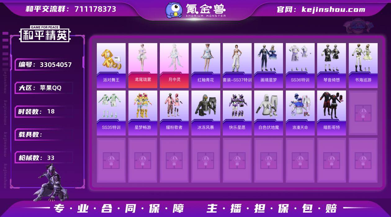 【和平精英】2粉装,6特效枪,0载具,历史最高段位:传奇王牌17星 王牌印记4次 热力值:23720,52套装,92枪械,98装备,58战备;套装:角色-鸢尾珑雾,角色-月中灵,套装-猎鹰,套装-红色运动,套装-黄色运动,套装-蓝色运动,套装-黄色伏地魔,套装-白色伏地魔,套装-黑色伏地魔,套装-竞技名士,套装-湖蓝色名流,套装-长空猛禽,套装-浪漫天命,套装-冰冻风暴,套装-街头潮人,套装-魅力单车,套装-狂沙舞者,套装-潮流炫酷,套装-派对舞王,套装-幻世战舞者,套装-暗影哥特,套装-元素星魂,套装-破蛋小黄鸡,套装-狙击之神,套装-耀粉歌者,套装-快乐星愿,套装-星梦畅游,套装-迅捷龙虾,套装-王牌教练,套装-柠萌假日,套装-龙的传人,套装-异域银装,套装-青翼流星,套装-狂鲨锋刃,套装-炫彩糖果,套装-元气之梦,套装-SS34特训,套装-SS35特训,套装-琴音绮想,套装-粉黛兰香,套装-画境星梦,套装-书海巡游,套装-SS37特训,套装-SS36特训,套装-红釉青花,套装-荒原烈焰,套装-雪国风尚,套装-雨过天青,套装-萌鸡速递,套装-SS38特训,套装-福马献瑞,套装-马上来财;枪皮:3级AKM-暮色玫影,AKM-影袭,AKM-涂鸦街区,AKM-星之彼岸,AKM-龙的传人,AKM-霓彩脉冲,...