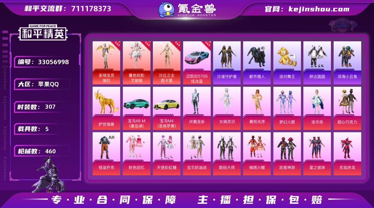 可二次实名【3红装1个3级 3级升级车 战神框小丑巡查衣29粉装22特效枪5载具金鞋都市猎人小熊背包黑丝 秒换绑不用等】 苹果Q区-168974热力值-历史最高段位:无敌战神-307套装-460枪皮 【3红装】 沙丘之主-图卡盟(1级) 圣域龙灵-瑞拉(3级) 暮色玫影-艾丽娅(1级)【5载具】 迈凯伦570S(炫冰蓝)(3级) 护世瑞兽 兰博SVJ绿色 宝马M4(圣保罗黄) 宝马X6 M(曼岛绿)【10稀有】 都市猎人 派对舞王(金靴子) 萌熊伴侣背包(小熊背包) 巡查衣 沙漠守护者 放客神游眼镜LED眼罩 胖达圆圆卤蛋头 糯粉咩咩 冷酷挑战者 红眼罩【27粉装】 怪诞乔克(小丑) 放客神游 梦幻火箭 宝贝奶油派 天使彩虹糖 甜心巧克力 洛天依 数码大师 星之彼岸 寒光使者 精灵娃娃 粉色回忆 炫光之旅 闲梦青缨 虎啸骄阳 炙焰赤龙 岚岚物语 独舞天鹅 第五大道 青空秋雨 黄族统领 呆萌星弥 小可学妹 锦绣火鲤 角色-女娲灵识 角色-伏羲圣卦 角色-羲和光序【22特效枪】 Kar98K-圣域龙灵(1级) SCAR-L-金蛇镇世(1级) M24-镜域双华(3级) P90-仙履奇缘(7级) M416-五爪金龙(7级) M416-心之恋语(5级) AKM-梦之光华(5级) AKS-74U-森灵之息(1级) Mk14-福马献瑞(1级) ACE32-萌骑漫游(1级) UMP45-霜月狼主(1级) Kar98K-伏魔团(5级) SCAR...