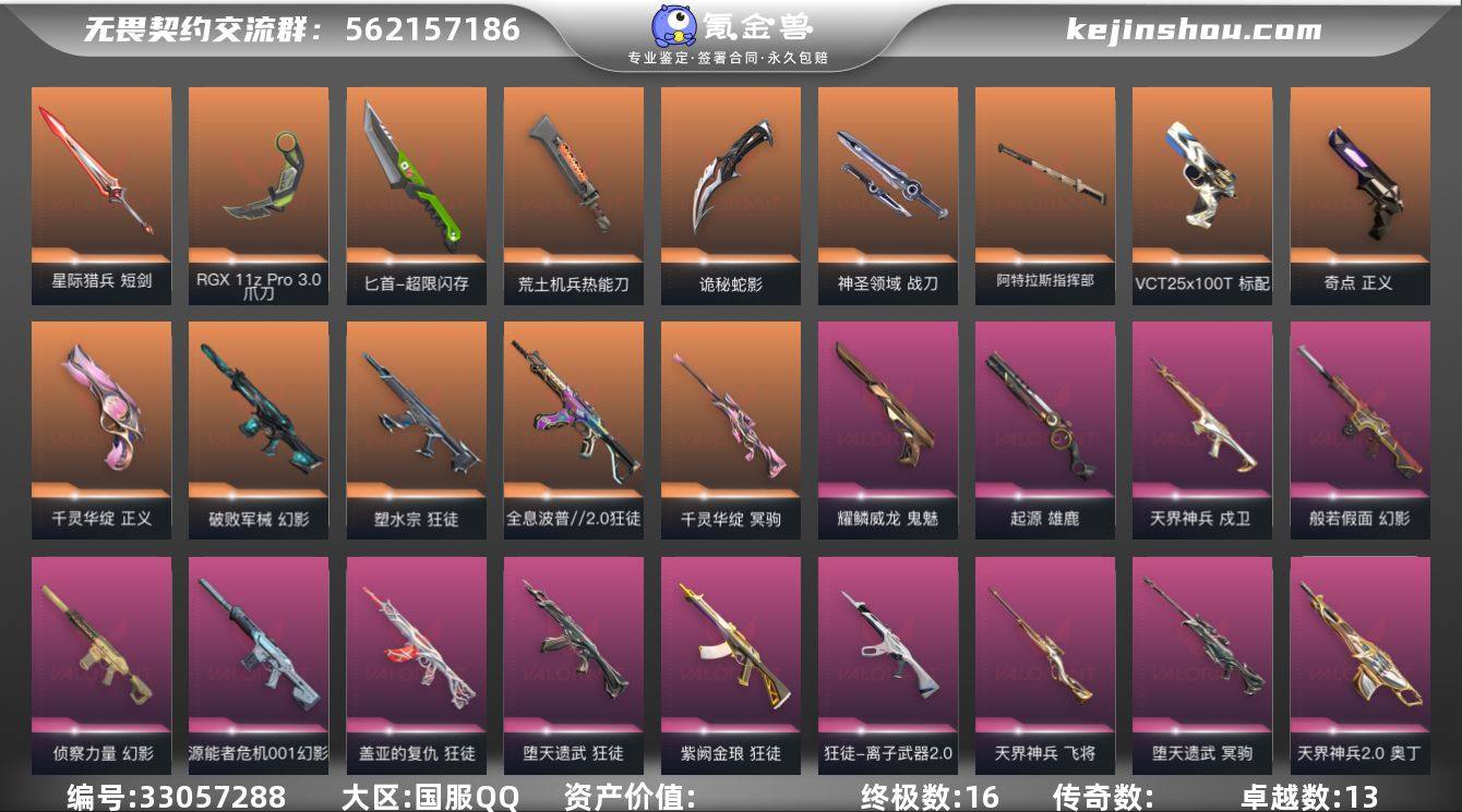 【编号88307 可秒换绑】【店长推荐!品颗秒号!星际猎兵短剑 诡秘蛇影军刀 塑水宗狂徒 !!】 【英雄】:幻棱,炼狱,维斯,暮蝶,钛狐,壹决,铁臂,捷风,雷兹,幽影,不死鸟,贤者,猎枭,蝰蛇,零,芮娜,奇乐,尚勃勒,霓虹,斯凯,夜露,星礈,K/O,海神,盖可,黑梦,钢锁 【近战武器】:近战武器-碎心裂刃,近战武器-RGX 11z Pro//3.0 爪刀,近战武器-黑波之刃,近战武器-超限闪存 匕首,近战武器-荒土机兵 热能刀,近战武器-诡秘蛇影 军刀,近战武器-神圣领域 战刀,近战武器-阿特拉斯指挥部 甩棍,近战武器-星际猎兵 短剑 【狂徒】:狂徒-全息波普//2.0,狂徒-塑水宗,狂徒-堕天遗武,狂徒-盖亚的复仇,狂徒-紫阙金琅,狂徒-离子武器//2.0,狂徒-荒土机兵,狂徒-诡秘蛇影 【幻影】:幻影-破败军械,幻影-般若假面,幻影-源能者危机001,幻影-侦察力量,幻影-超限闪存,幻影-神圣领域,幻影-纳米打击,幻影-末日之翼 【戍卫】:戍卫-天界神兵,戍卫-浮光跃金,戍卫-逆冲蛮牛,戍卫-月球哨兵,戍卫-折光棱晶 【獠犬】:獠犬-神圣领域,獠犬-模拟赫兹,獠犬-逆冲蛮牛 【冥驹】:冥驹-千灵华绽,冥驹-堕天遗武,冥驹-荒土机兵,冥驹-模拟赫兹,冥驹-星云暗涌 【飞...