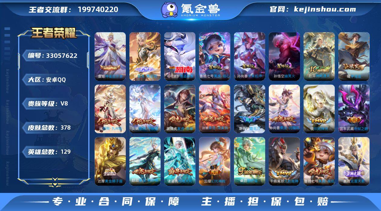 贵族8/皮肤378/典藏1/传说25/史诗131/英雄129/姜子牙全皮/孙权全皮/赵怀真全皮/戈娅全皮/神鉴启示录/器灵·螭龙剑/幽冥火/寅虎·焰心/未来机甲/怪盗基德/云缨神骥越千峰/神树通天/愿照·千秋盛/愿照·九州拓/幻光神枪/玄雷天君/鸣野蒿/夏侯惇霜北刀/乘龙·问璇玑/乘龙·淬吴钩/乘龙·铭钟鼎/寅虎·赤拳/寅虎·瑞焰/异界灵契/淬星耀世/李逍遥/时雨天司/炽阳神光/启明星使/黄金白羊座/久胜战神/黄金狮子座/冠军飞将/地狱之眼/地狱火/埋骨钱/虞姬夏日便利店/天穹之誓(s36)/谪仙醉月/阴阳师/寅虎·御盾/皇家上将/神迹守卫-墨子/优雅恋人/蔷薇恋人/狮舞东方/高山流水/迷踪丽影/天狼运算者/寅虎·展翼/夜都怪侠/幻夜卜梦/猎兽之王/赤莲之焰/云间偶戏/朔风刀(s17)/游园惊梦/烛龙(s10)/天狼征服者/穷奇(s12)/蓝屏警告/暗影游猎/山海·玄木吟/魔术师/万华元夜(s22)/星际陆战队-达摩/沙漠行僧(s26)/海滩派对/醍醐杖(s20)/航海奇遇记/冰锋战神/演武夺筹(s23)/夺宝奇兵/飞衡/驯魔猎人/金庭之子(s27)/青春决赛季/潮玩骑士王/至尊宝/御旌(s15)/圣弓游侠/银河之约/云中旅人(s29)/霸王别姬-虞姬/神迹守卫-钟馗/驱傩正仪(s24)/遇见飞天/寅虎·心曲/冰霜恋舞曲/真爱魔法/单词大作战/黎明之约/繁星吟游/逐梦之...