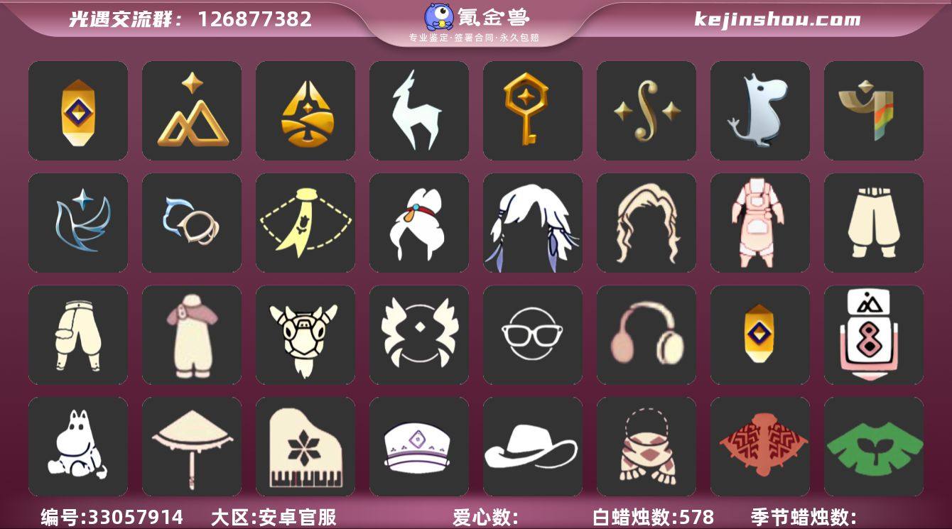账号类型: 手机账号 季节已毕业: 追忆季,拾光季,归巢季,九色鹿季,筑巢季,二重奏季,姆明季,彩染季,青鸟季,双星季,迁徙季 完成地图: 晨岛,雨林,霞谷,暮土 珍稀物品: 彩虹围巾 礼包: 巫师,围巾,小狐狸,蜘蛛斗,运动鞋,吉他,橘子,红伞,兔子,水母,彩虹耳钉,彩虹耳机,魔法棒,新年耳钉,创始人,姆明饰品套装,树精肩饰,线框斗篷礼包 裤子: 武士裤,背带裤,搓澡巾,妮妮裙子,筑巢季·裤子 面具: 夜行毕业面具,辉光羚羊面具 面饰: 红耳机,黑框眼镜,青鸟毕业面饰 项链: 围巾 发型: 归巢毕业发型,若笠,虚荣,飞天盘发 头饰: 牛仔帽,蓝色音乐会,平顶帽 斗篷: 海洋斗,绿芽,彩染围巾斗篷,青鸟毕业斗篷 配饰: 雨伞,筑巢季·小手办,高音钢琴,姆明抱枕,小红伞,相机,鲲灯 亮点: 【优质装备】:武士裤,归巢毕业发型(五塑彩羽发),筑巢季·小手办(光之子试衣),高音钢琴(白色高脚钢琴),追忆季,妮妮裙子(妮妮长裙),牛仔帽(西部帽),姆明抱枕,小红伞(姆明红伞)(姆明大伞),相机(季卡相机),拾光季,彩虹围巾(五塑彩带斗),归巢季,九色鹿(九色鹿季),围巾(肩带),筑巢季,二重奏季,姆明季,筑巢季·裤子(设计师长袍),夜行毕业面具(棕熊面具),黑框眼镜(粗框眼镜),鲲灯(追忆之书),辉光羚羊面具,彩染季,飞天盘发(九色鹿丸子头),...