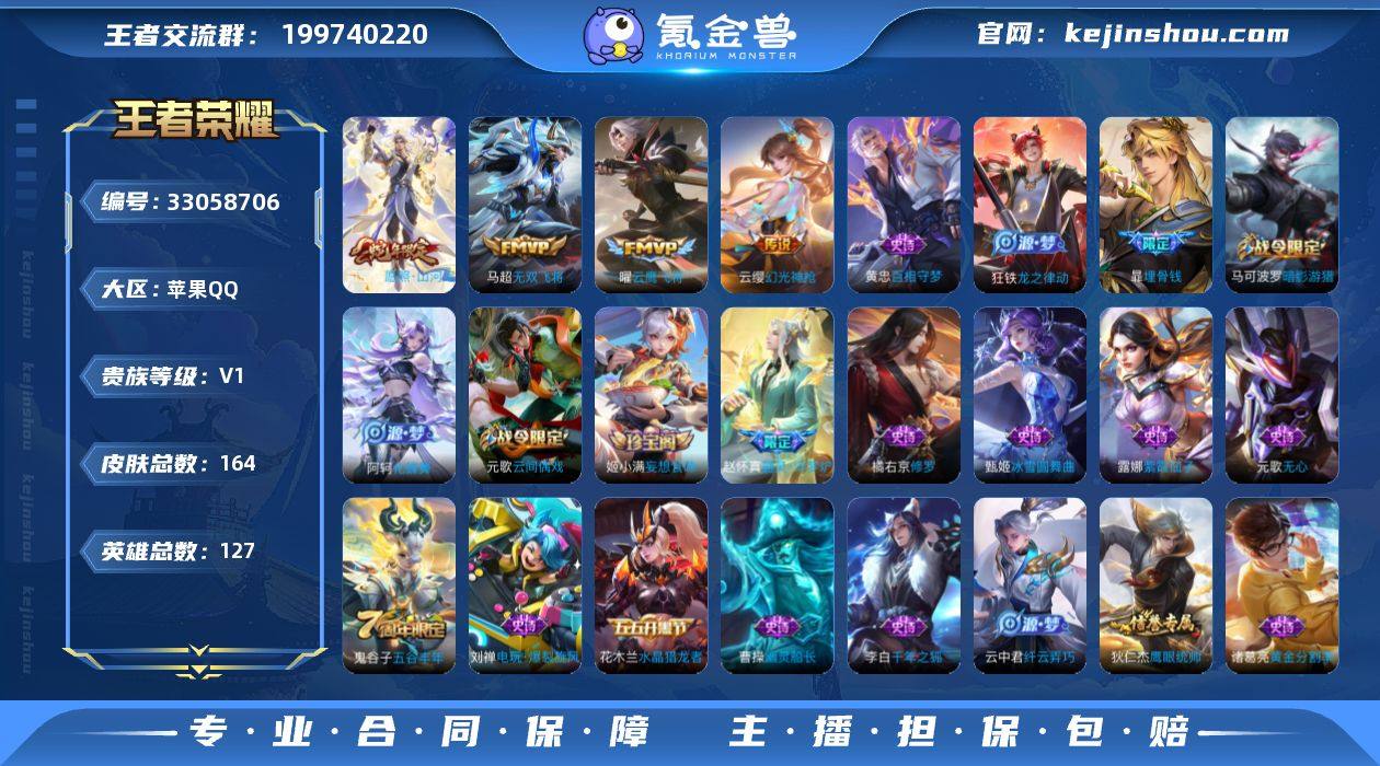 【司空震愿照山河定 马超无双飞将】苹果Q-V0-永恒钻石V段位-126英雄-164皮肤-4传说-37史诗 【传说皮肤】:司空震愿照山河定,云缨幻光神枪,马超无双飞将,曜云鹰飞将 【限定皮肤】:白起狰,暃埋骨钱,狄仁杰阴阳师,虞姬凯尔特女王,赵云皇家上将,元歌云间偶戏,元歌无心,马可波罗暗影游猎,狄仁杰魔术师,狄仁杰万华元夜,项羽海滩派对,老夫子醍醐杖,程咬金演武夺筹,亚瑟潮玩骑士王,李元芳云中旅人,钟馗驱傩正仪,干将莫邪胡桃夹子,雅典娜黎明之约,太乙真人饕餮,鬼谷子原初探秘者,鬼谷子五谷丰年,百里玄策原初追逐者,弈星混沌棋,沈梦溪大漠名商,明世隐疑决卦,裴擒虎擒涛扼浪,米莱狄御霄,云中君纤云弄巧,猪八戒西部大镖客,鲁班大师探海日志,桑启海盐诗旅,蒙恬荣光圣徽,鬼谷子天穹祈灯,姬小满妄想食味,沈梦溪龙舞盛年,刘邦剑破天穹 【年限皮肤】:司空震愿照山河定 【赛季限定】:虞姬凯尔特女王,白起狰,太乙真人饕餮,米莱狄御霄,弈星混沌棋,明世隐疑决卦,老夫子醍醐杖,鬼谷子原初探秘者,狄仁杰万华元夜,程咬金演武夺筹,钟馗驱傩正仪,沈梦溪大漠名商,李元芳云中旅人,桑启海盐诗旅,裴擒虎擒涛扼浪,鲁班大师探海日志,鬼谷子天穹祈灯...